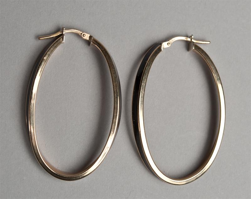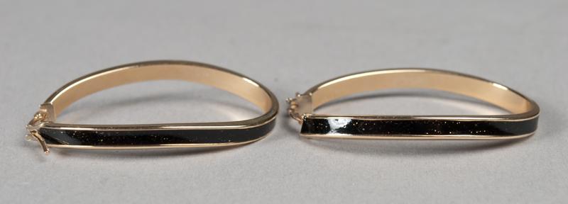 Slightly twisted hoop earrings lined in black and glitter enamel. 3.4 grams total weight.