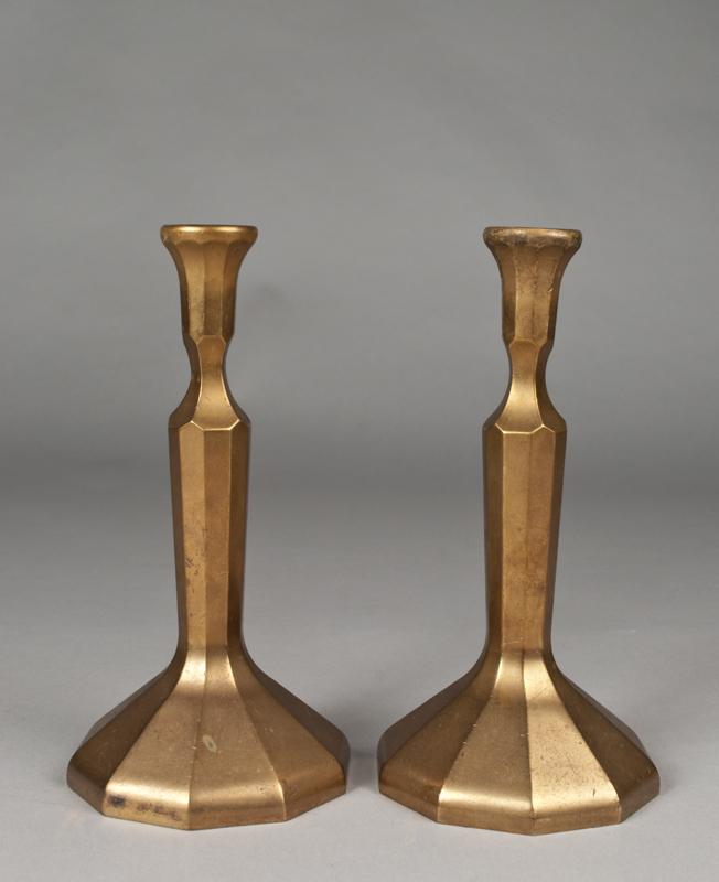 With facceted bases and paneled columns, 8.75"H, circa 18th century.