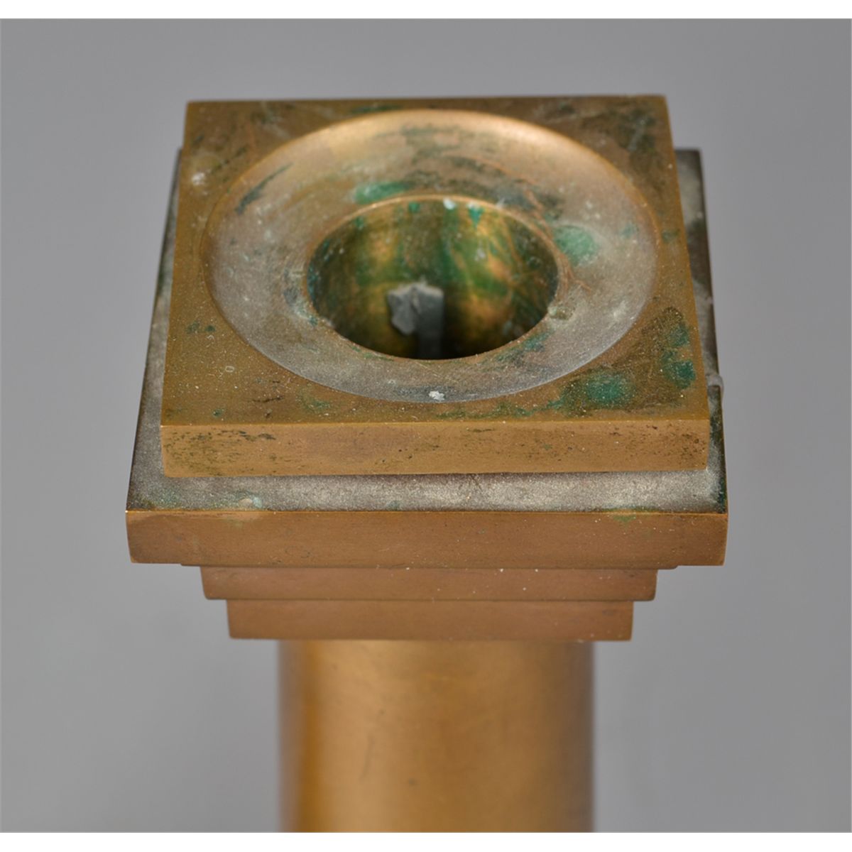 Graduated stepped square base, with central turned column, and graduated stepped candle holder and removeable plate. 10" H x 4.25" Sq. Circa mid to late 19th century. Private collection Troy, MI.