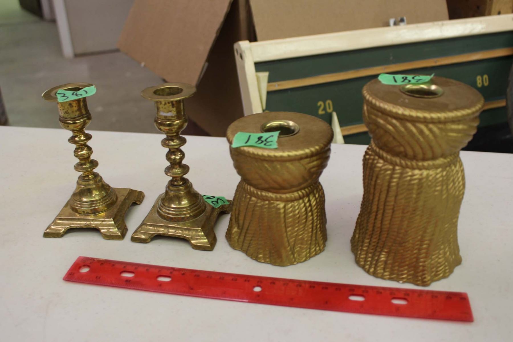 Pr Of Candlesticks (2) (One Brass & One Ceramic)