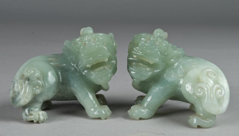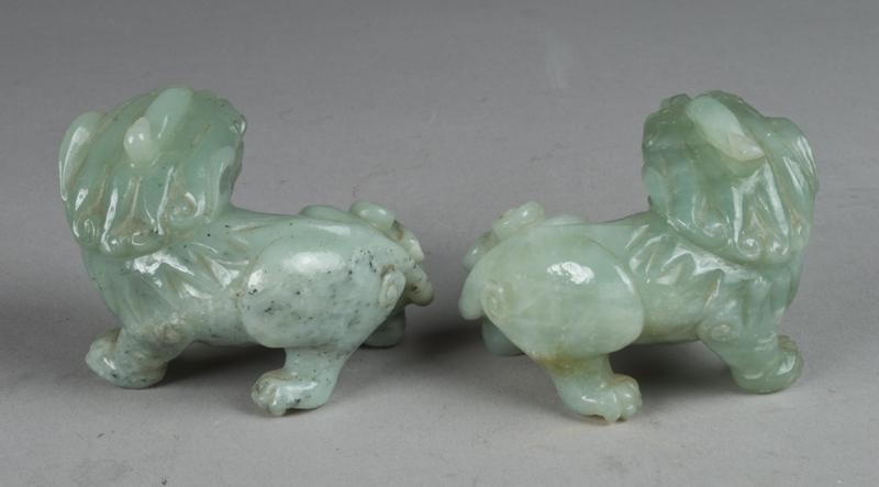 Each finely carved to depict standing foo dogs, each 3.5"L, circa 20th century.