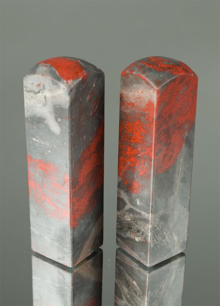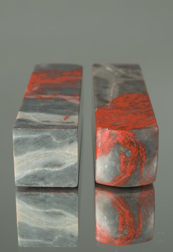 Both dark gray with marbled red-stained stone chops, blank. 3.5" L. 20th Century.