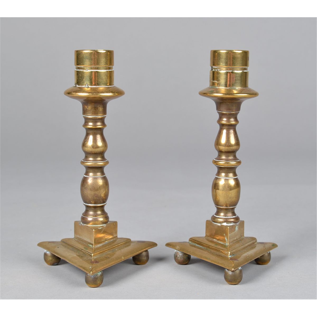 A balluster turned shaft resting on triangular stepped bases, with three ball feet. Signed to the base. 5.5" H, circa early 19th century. Polish residue, otherwise very good condition. Private collection Lapeer, MI.