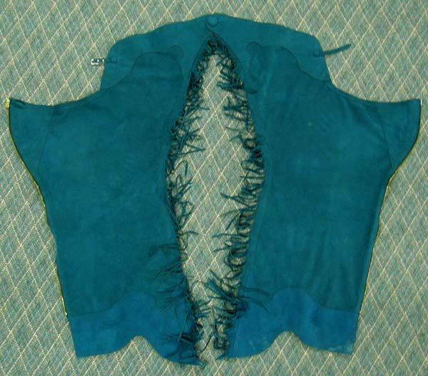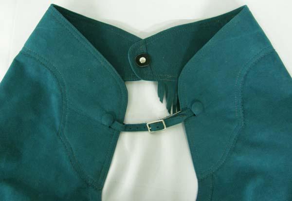 Pr Of Turquoise Leather Western Woods Chaps, measures approx. 49'' long x 38''. SHI $20.