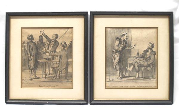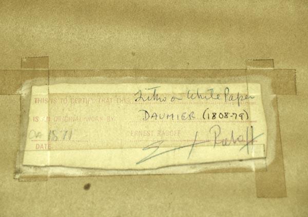 Original Lithographs on White Paper, by artist Daumier (1808-1879). Dated 1871 & recorded by Ernest Raboff. Signed on the back by Raboff. Wood frames, double matted, under glass. Visual measures approx. 10''H x 8 3/4''W. Buyers Pay Actual Shipping and Handling Charges(see terms and conditions for more information).