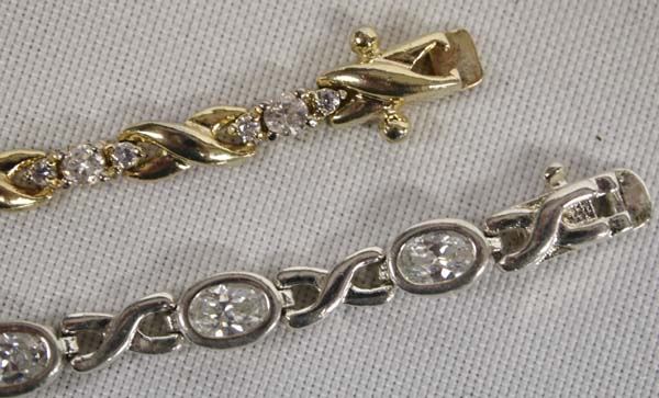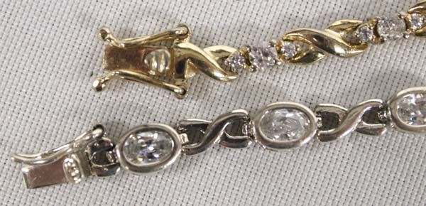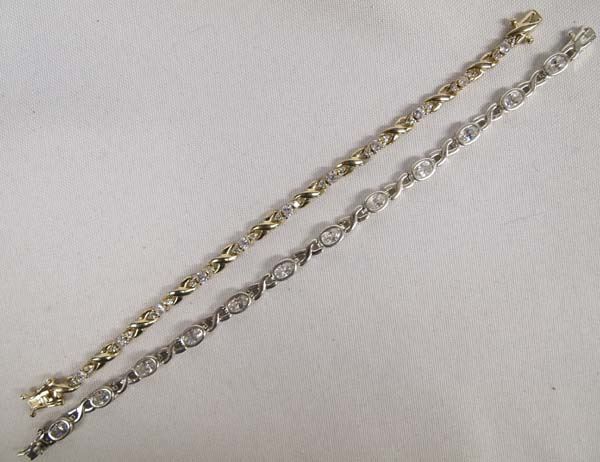 Pr Sterling Silver Tennis Bracelets, one bracelet measures 8'' end to end x 3/8''W, is stamped .925 and weighs 11.7g, the other bracelet measures 7.25''L x 3/8''W and weighs 10.4g, it is stamped .925.
