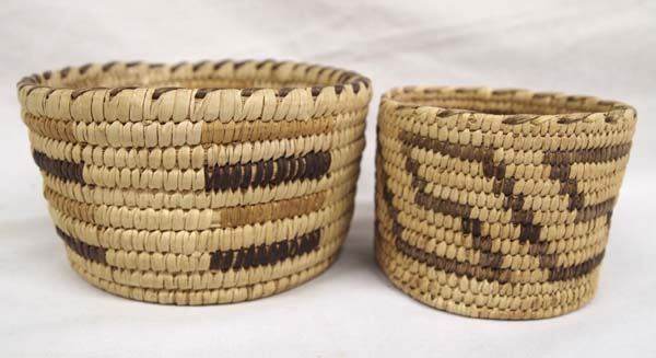 Pr Native American Tohono O'odham Cylindrical Baskets, largest measures 3''H x 5''W