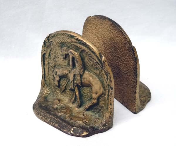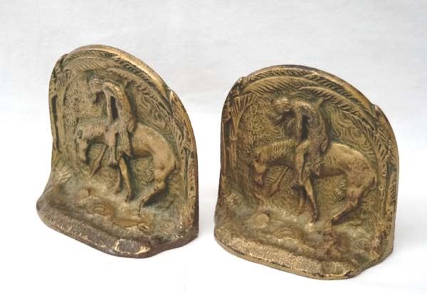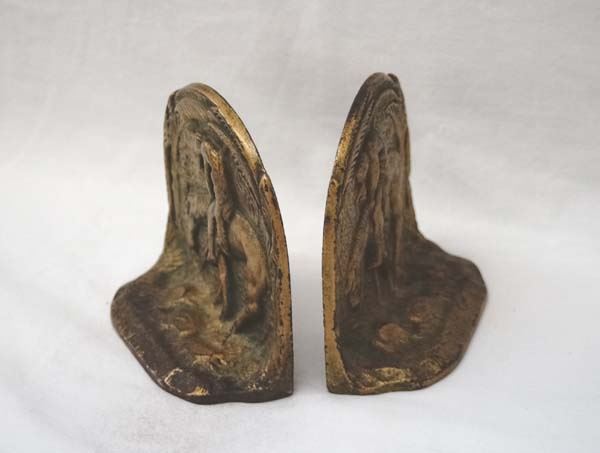 Pr Vintage Brass End of the Trail Bookends, measure 5'' x 4''