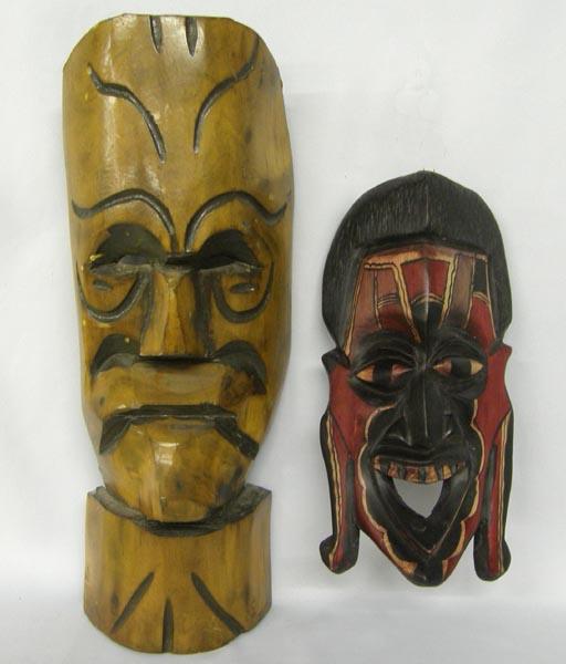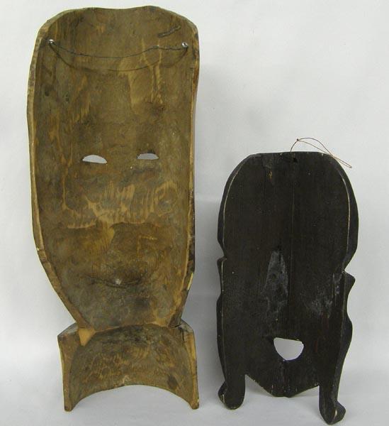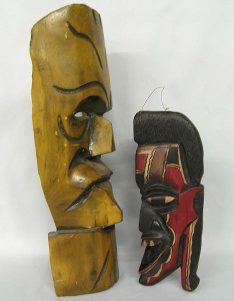 Pair of Wooden Ethnic Masks. Largest measures approx. 18.5''Lx6.5''Wx4''D. Buyers Pay Actual Shipping and Handling Charges(see terms and conditions for more information).