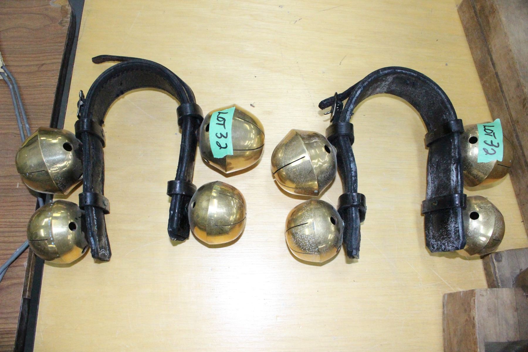 Pr of Authentic Brass Horse Bells with Good Harness Leather