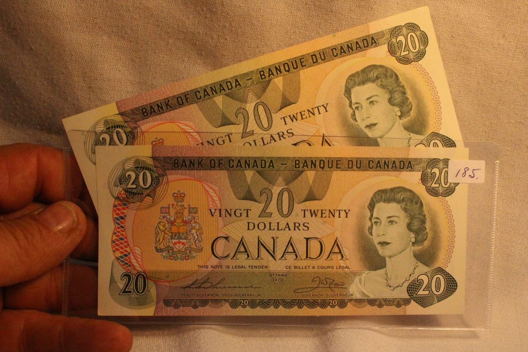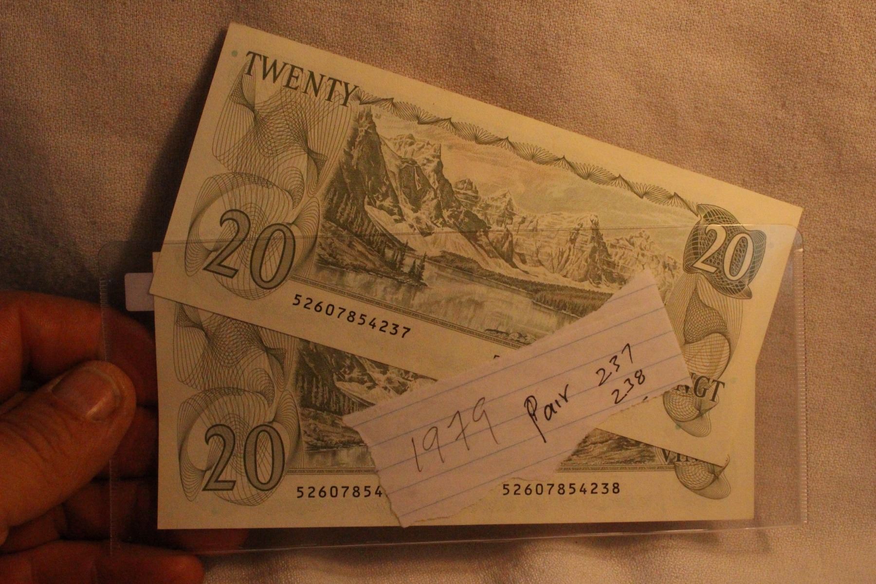 Pr of Cdn. 1979 Twenty Dollar Bills - 52607854237…38 - Unc.