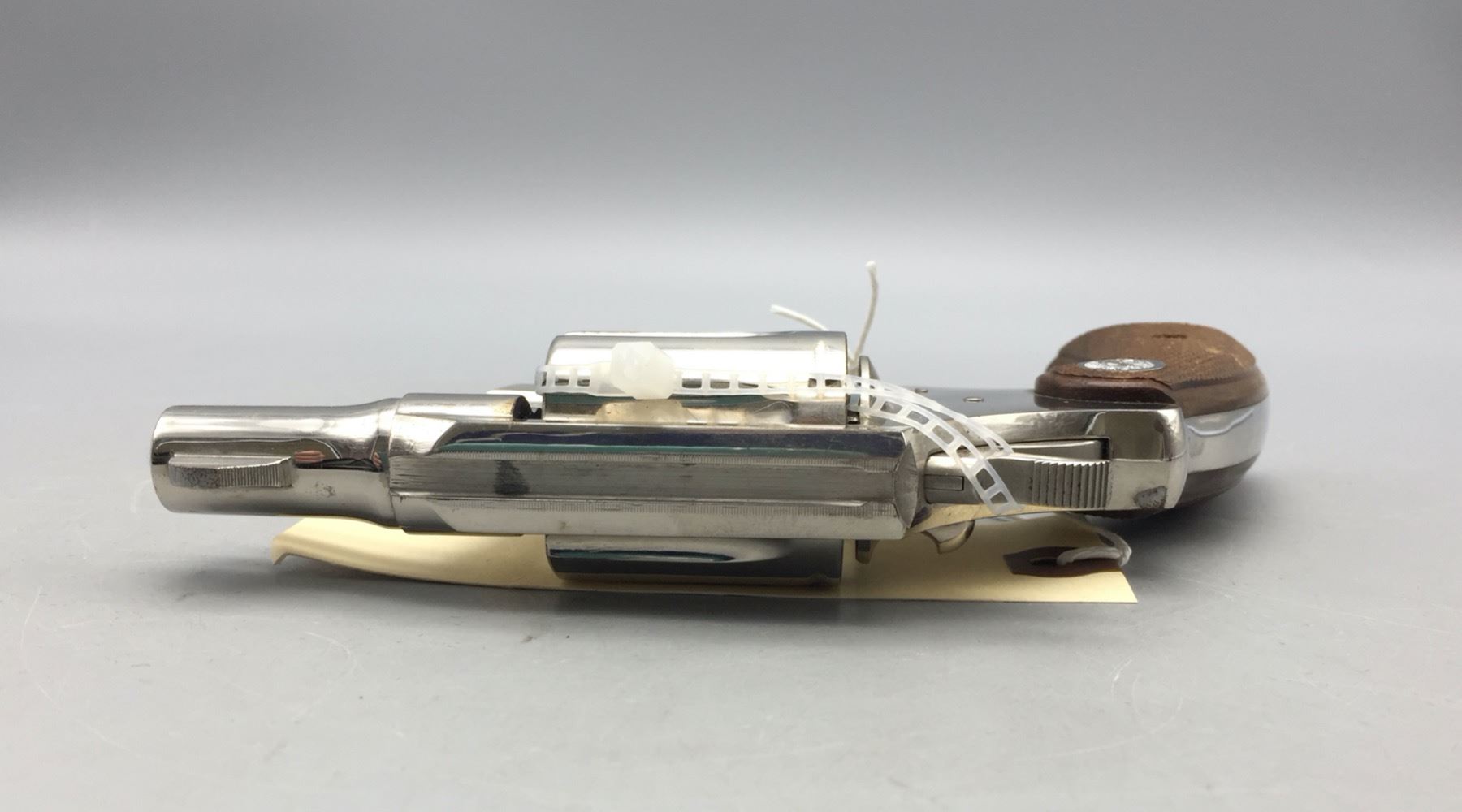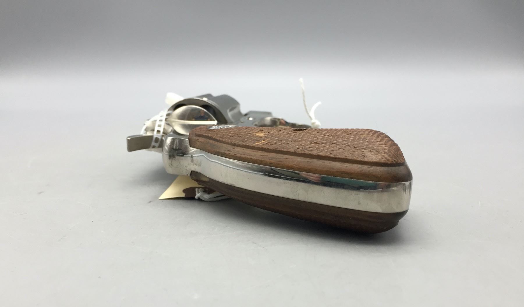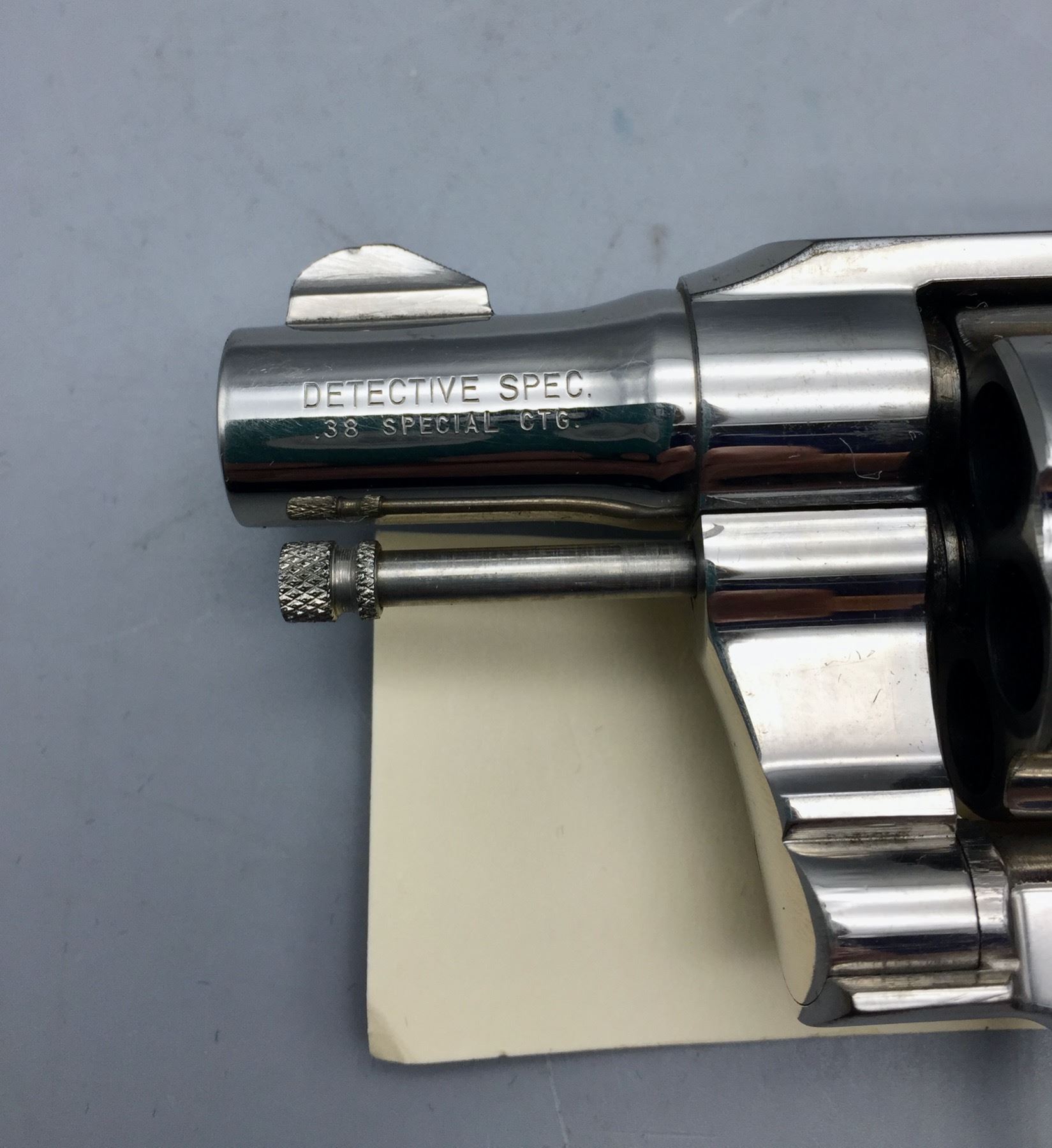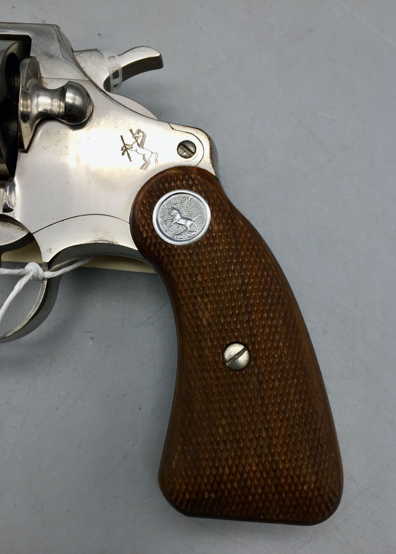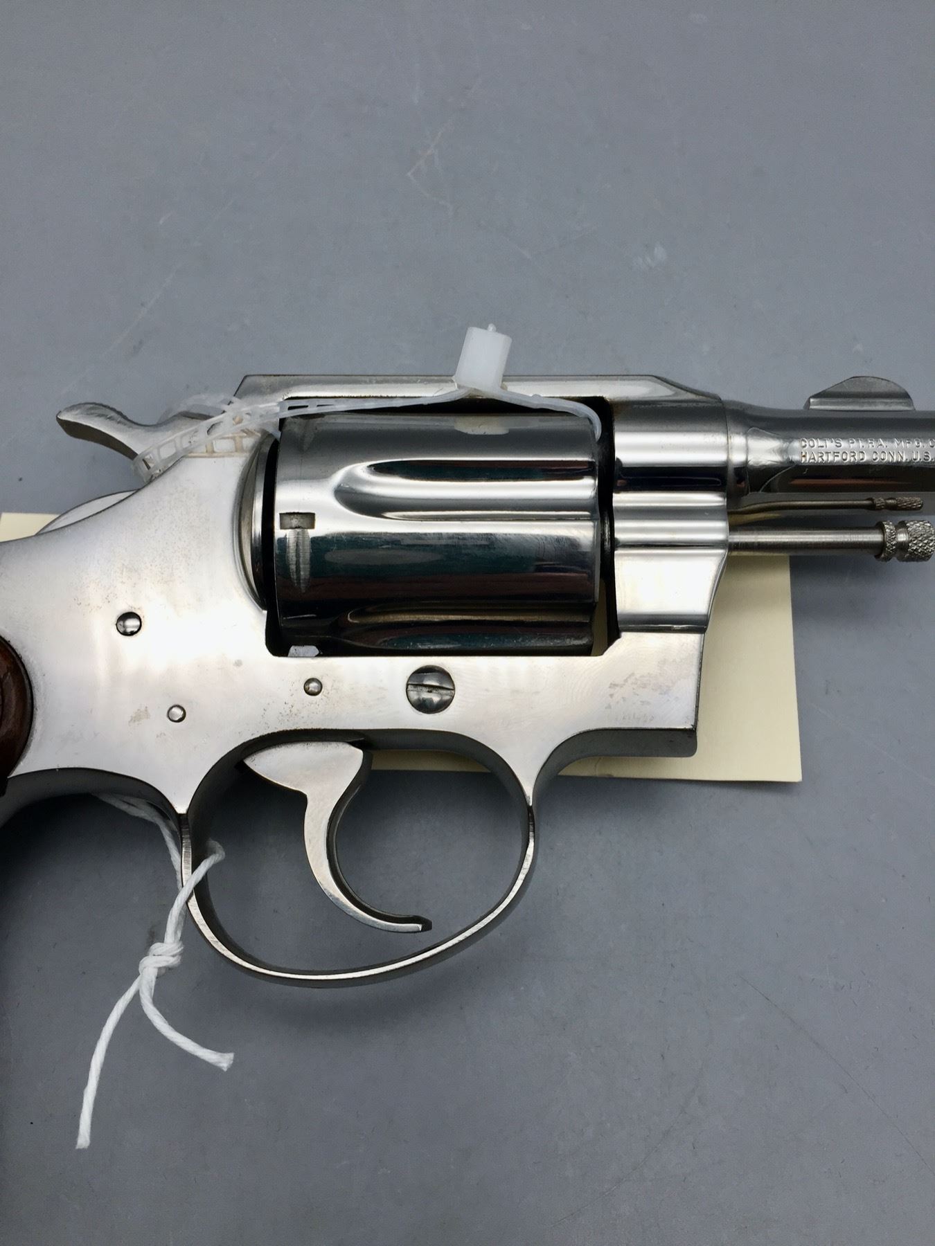 Description: Presented for sale in this lot is a Colt Detective Special Revolver in a .38 caliber with a nickel finish and walnut grips. It comes with a padded pistol case and is in super condition. Maker: Colt. Approx. Age: 1959. Serial No. 744317. Size: Barrel measures 2 inches long. Condition: Good to excellent for its age, only minor shelf wear/scratches showing. Please look closely at the pictures - they are an important part of our description. Shipping: There will be a $15 handling, packaging fee for shipping this lot. The actual cost of postage will be added on top of that. *****This firearm requires an FFL Transfer*****