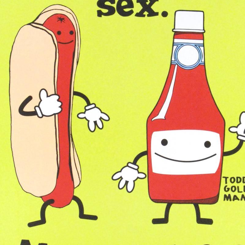 ADD THE IRREVERENT ARTWORK OF WORLD-RENOWNED ARTIST TODD GOLDMAN TO YOUR COLLECTION! Pop artist Todd Goldman is known all across the globe for his whip-smart and wickedly funny puns and pictures! "Practice Safe Sex, Always Use A Condiment!" is a fine art litho poster hand signed by Todd. Measures approx. 24" x 36" (poster).