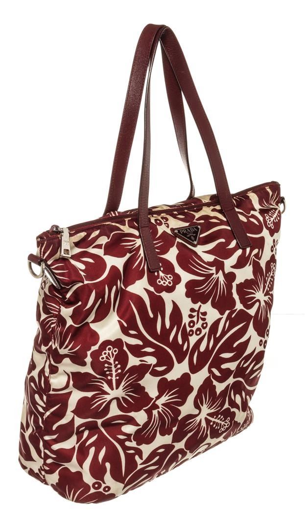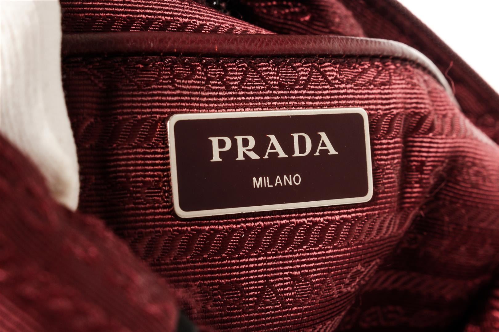 Prada 2Way Bag. All available information is listed in the description and shown in the photos. Prada 2Way Bag White Red Fabric. Features silver hardware, red canvas interior, and a silver zipper closure.