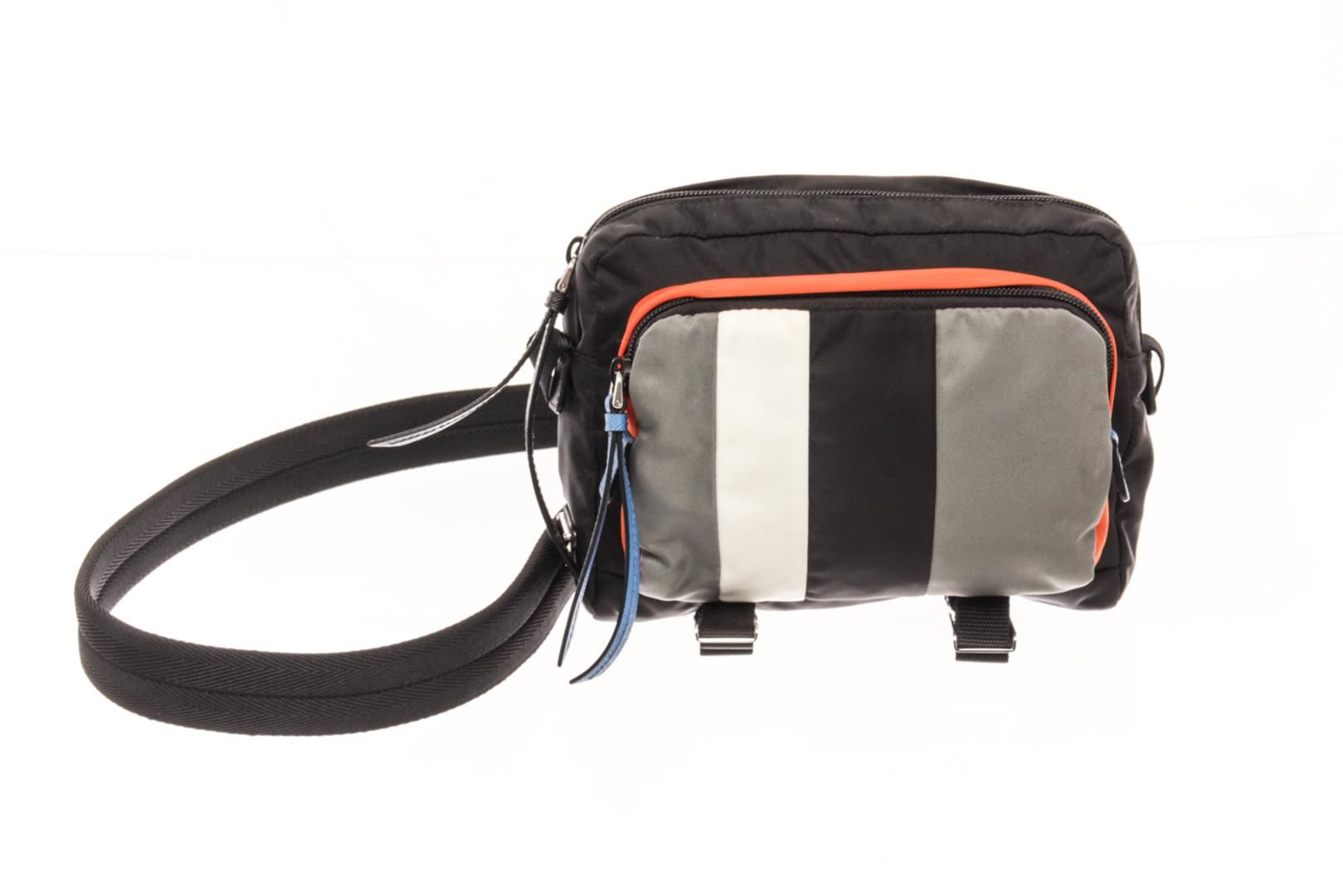 Prada Black Nylon Technical Zip Crossbady Bag. All available information is listed in the description and shown in the photos. prada black nylon technical zip crossbady bag with light wear and creasing on exterior and strap, scratches on hardware. 8"W x 7"H x 1.5"D, Strap Drop:14-21" / 20.32 x 17.78 x 3.81 Cm