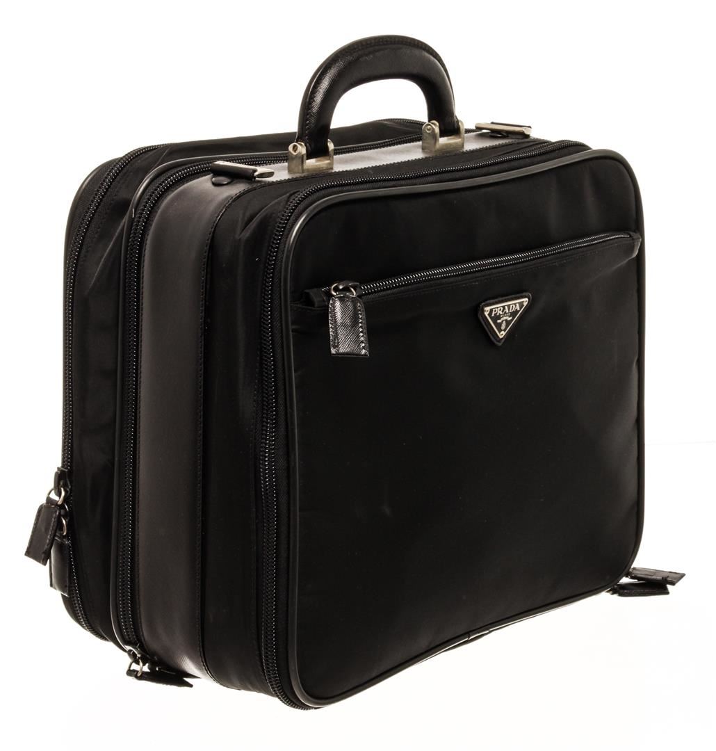 One Prada Black Tessuto and Saffiano Leather Porta Computer Bag. Item is sold AS-IS. All available information is listed in the description and shown in the photo. prada black tessuto and saffiano leather porta computer bag