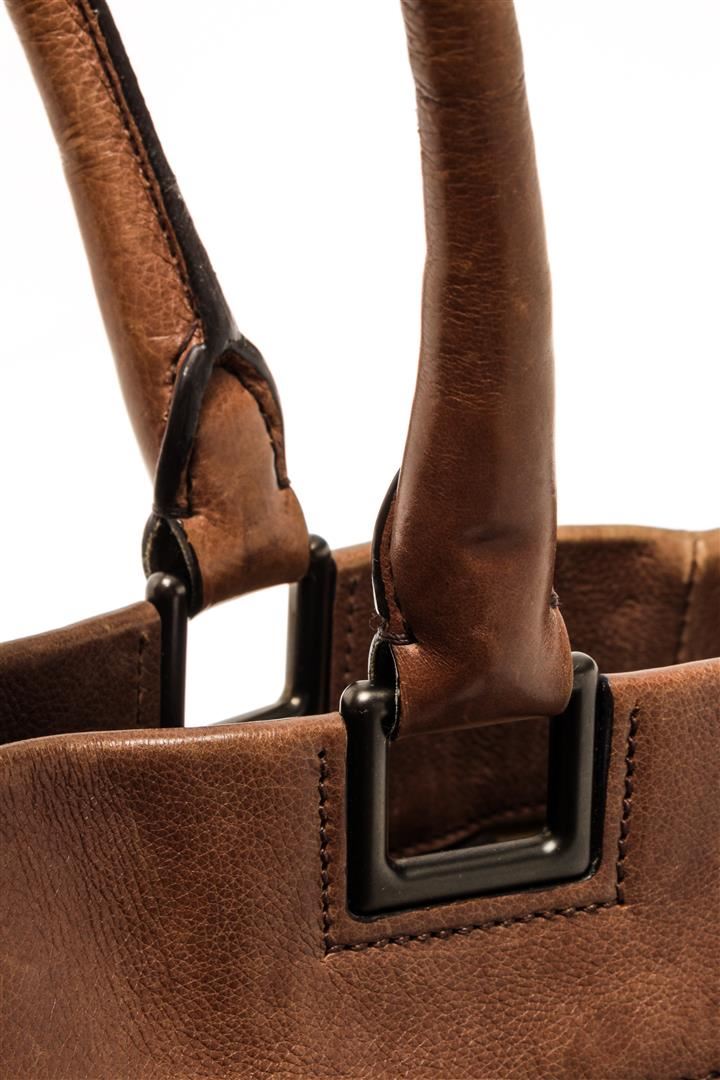 One Prada Brown Leather 2 Way Shoulder Bag. Item is sold AS-IS. All available information is listed in the description and shown in the photo. prada brown leather 2 way shoulder bag with leather body, rolled leather top handles, a detachable flat leather strap, an open top with magnetic button closure, and an interior zip and slip pockets.