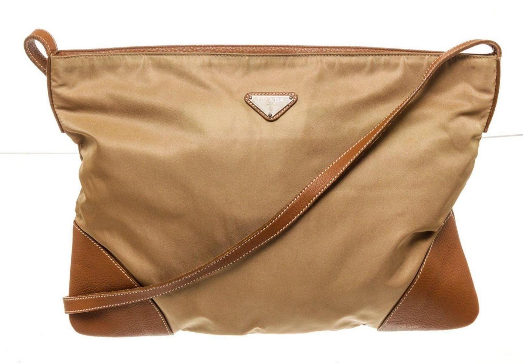 Prada Brown Leather Large Crossbody Bag. Prada Brown Leather Large Crossbody Bag with material leather, gold-tone hardware, interior zip pockets, shoulder strap and zipper closure.
