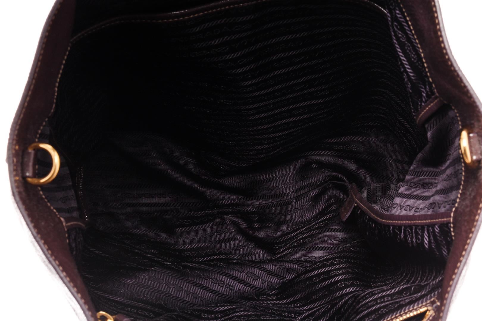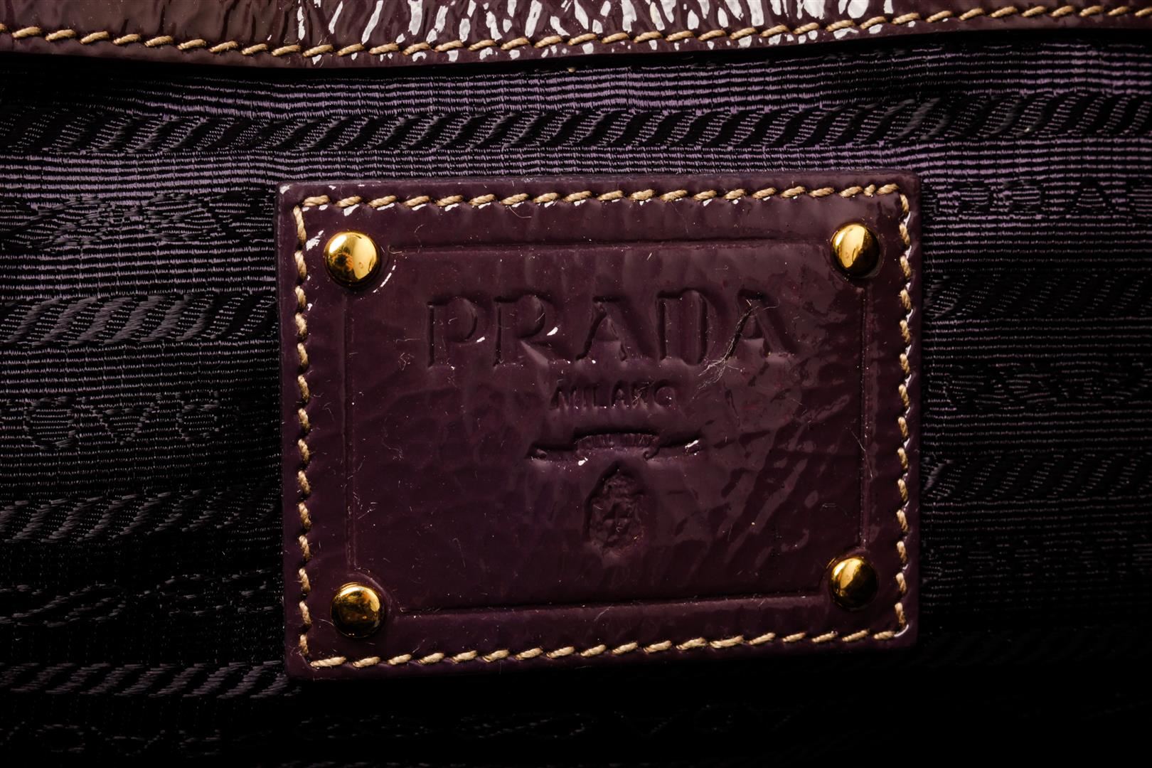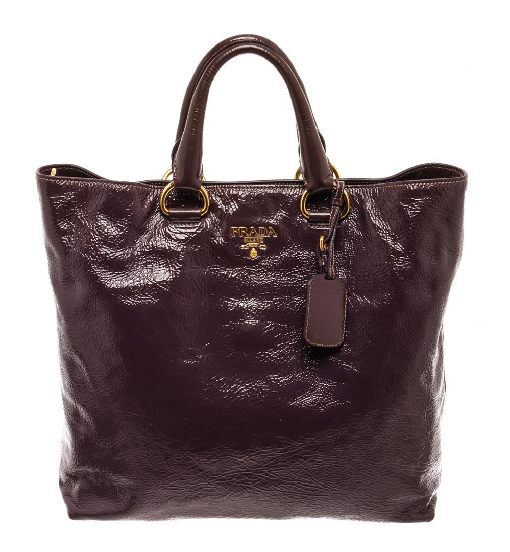 Prada Cacao Brown Patent Leather Tote Bag. All available information is listed in the description and shown in the photos. Prada Cacao Brown Patent Leather Tote Bag with gold-tone hardware, dual rolled leather handles, detachable flat leather strap, and interior zip and slip pockets, a top zip closure.