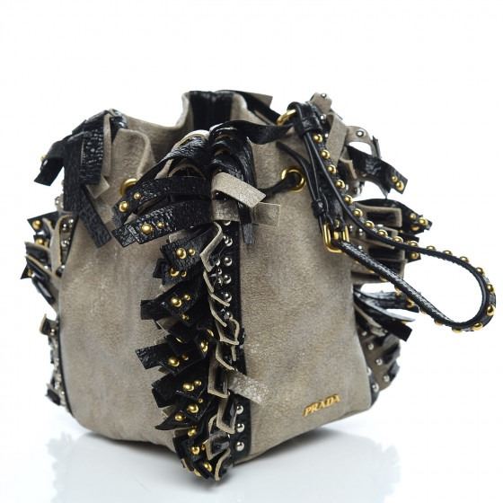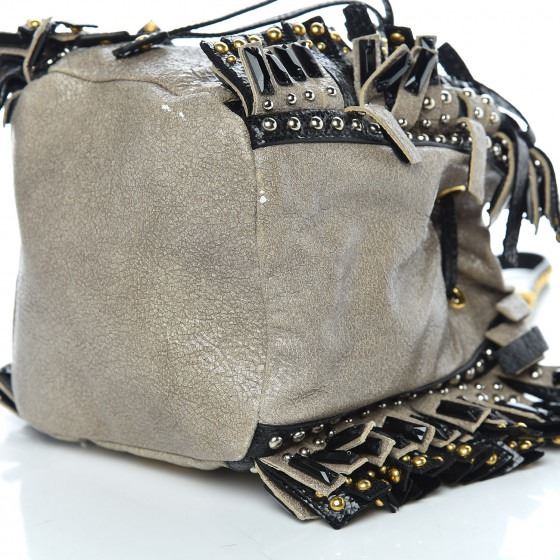 Style: PRADA Crackled Craquele Studded Fringe Wristlet Pouch Talco