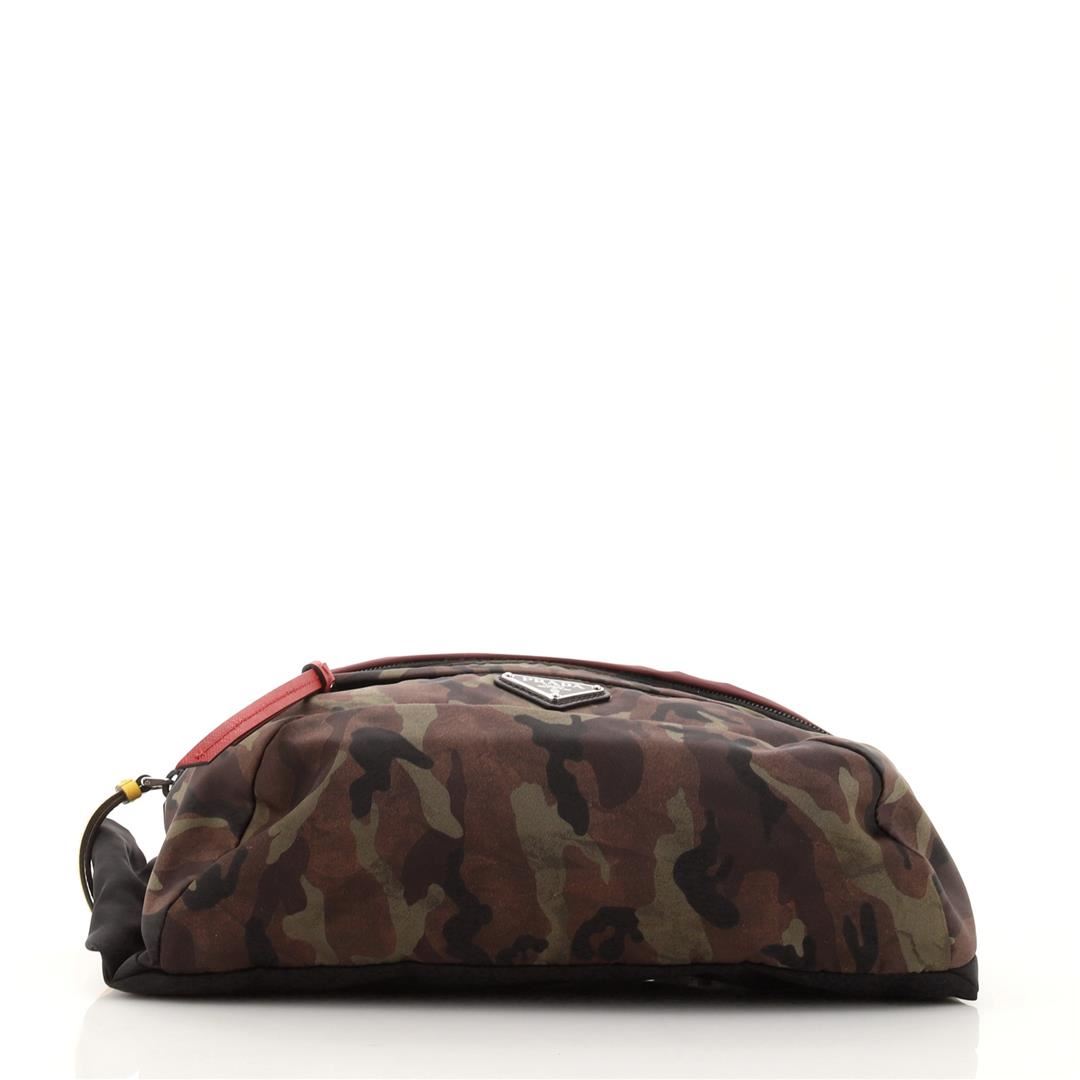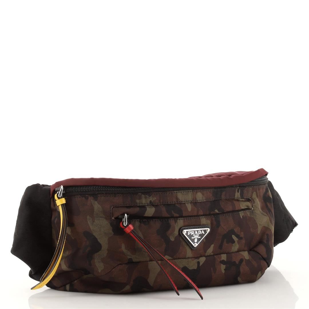 Prada Camouflage Zip Waist Bag Tessuto Medium. Fraying and nick on side opening corner, curling on zipper pull, scratches on hardware.