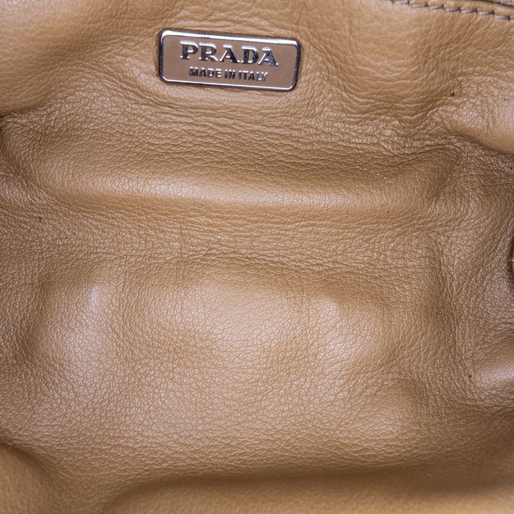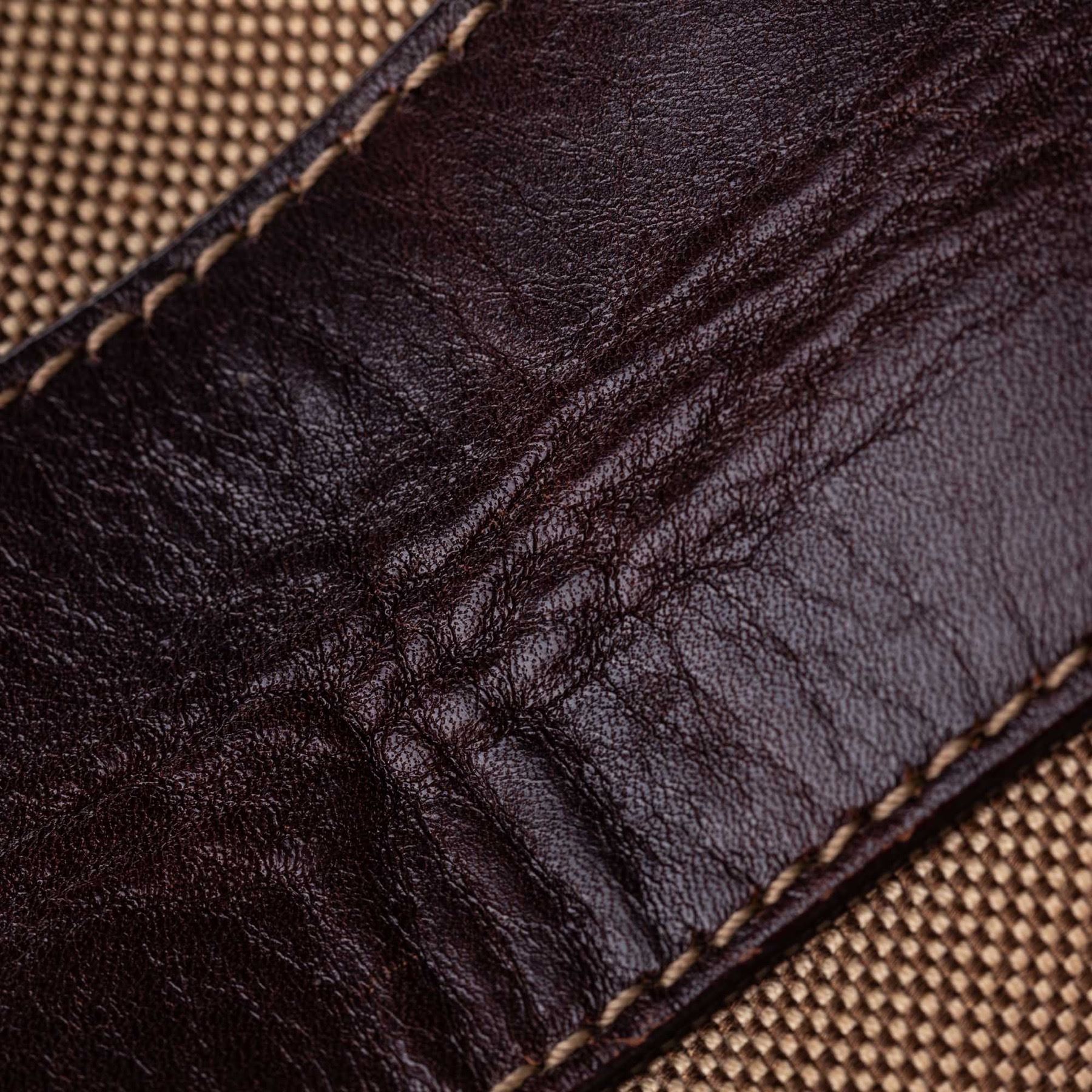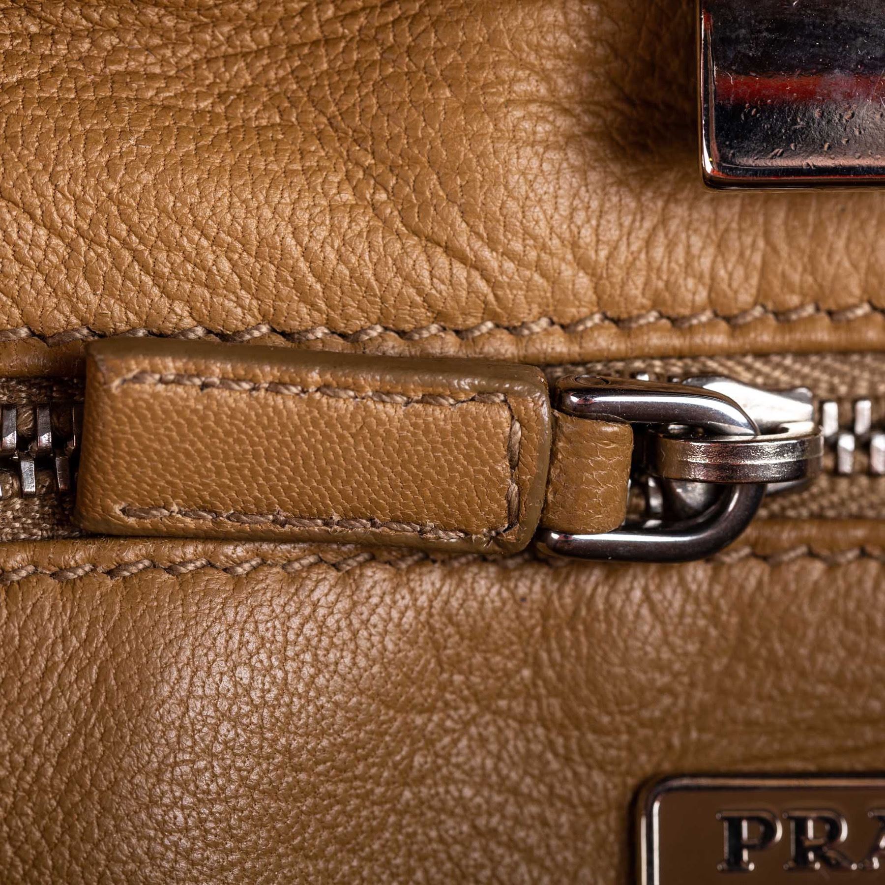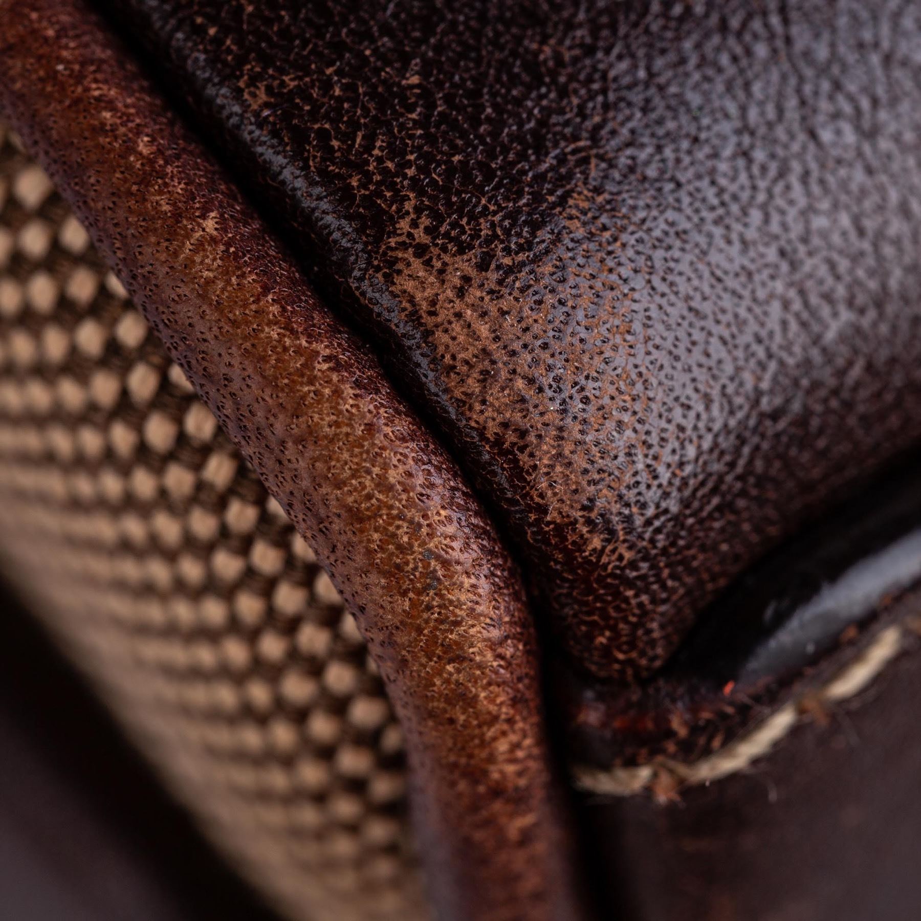 This crossbody bag features a canvas body with leather trim, a flat leather top handle, a detachable flat leather strap, a top push lock closure, and an interior zip pocket. Fabric x Canvas x Leather x Others Brown x Light Brown x Brown x Dark Brown Exterior front is scratched. Exterior back is scratched. Exterior bottom is scratched. Exterior handle is discolored and scratched. Exterior corners is discolored, peeling and scratched. Interior lining is stained. Lock is tarnished. Size: 9 x 16 x 6 Card: NO Made in: Italy