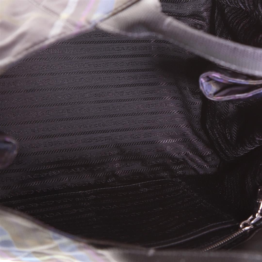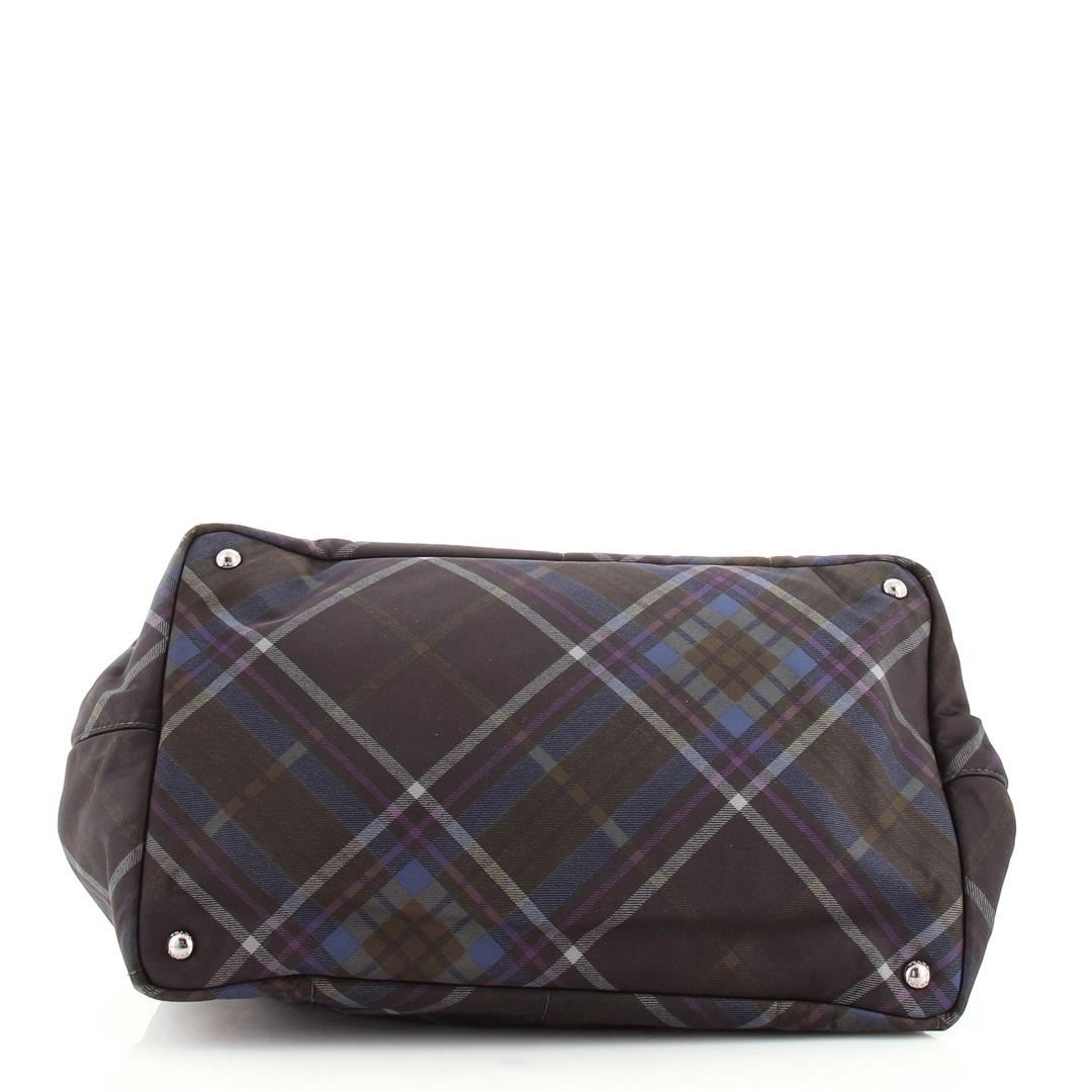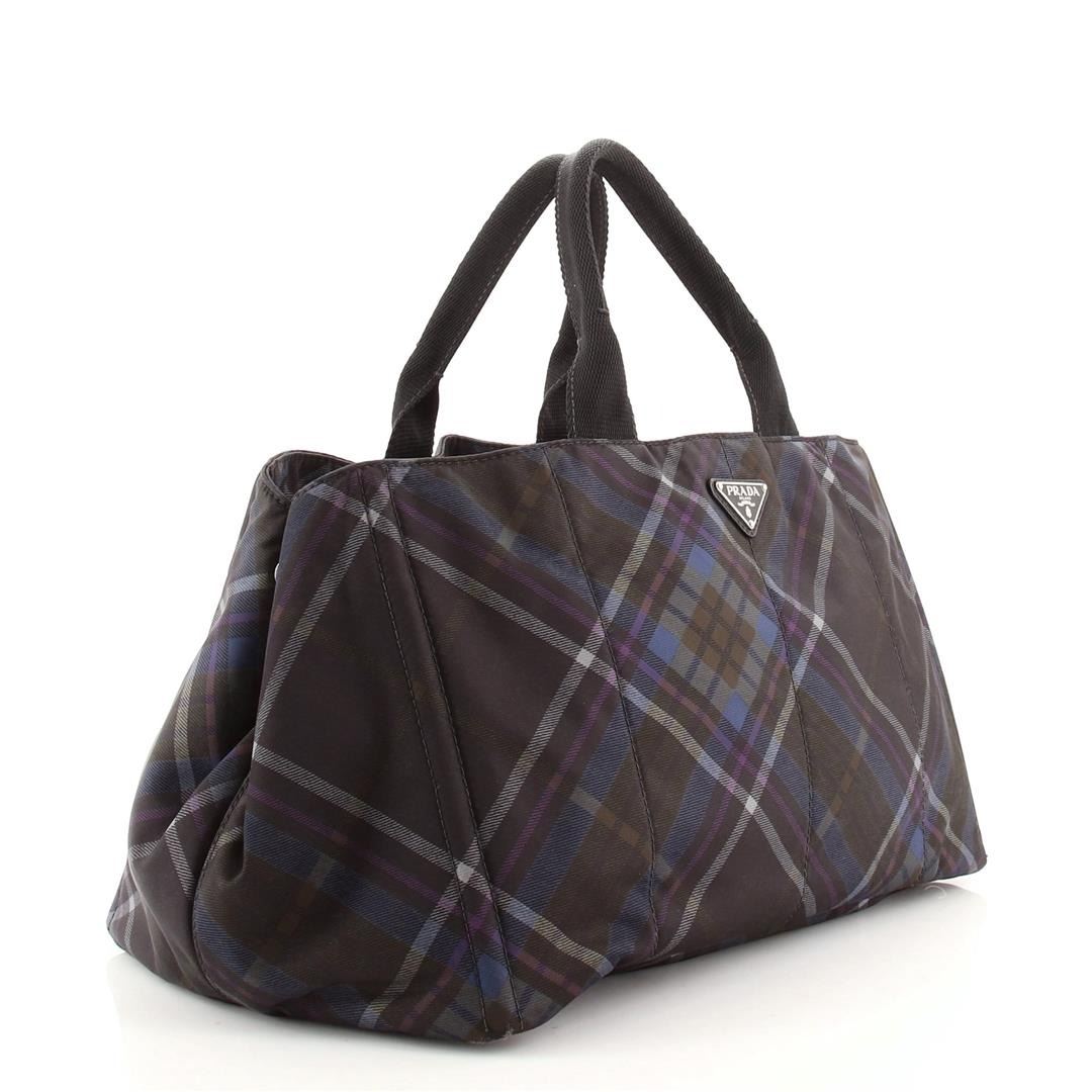 Prada Canapa Tote Printed Tessuto Medium. Odor in interior. Creasing on exterior, moderate wear and broken threads on base corners, scratches on hardware.