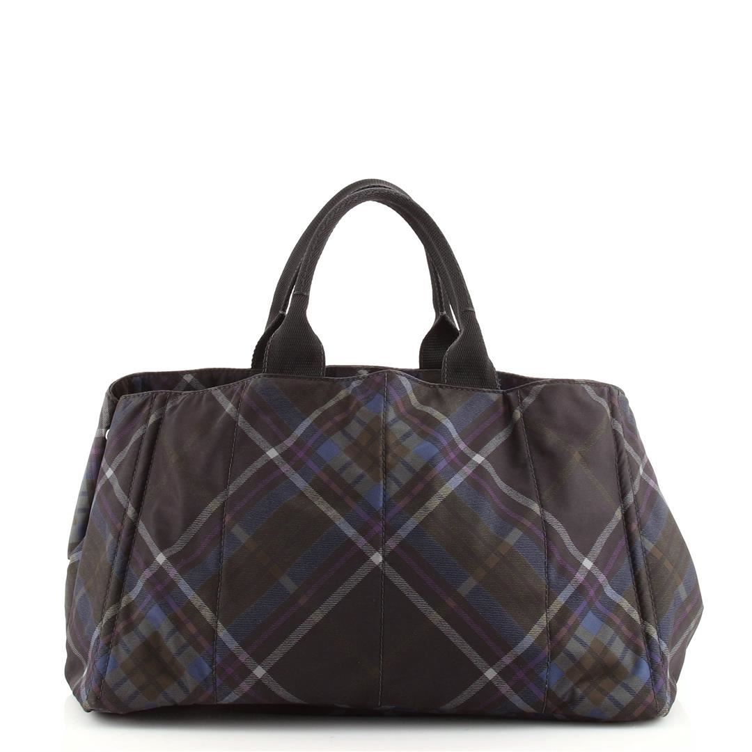 One Prada Canapa Tote Printed Tessuto Medium. Item is sold AS-IS. All available information is listed in the description and shown in the photo. Prada Canapa Tote Printed Tessuto Medium. Odor in interior. Creasing on exterior, moderate wear and broken threads on base corners, scratches on hardware.