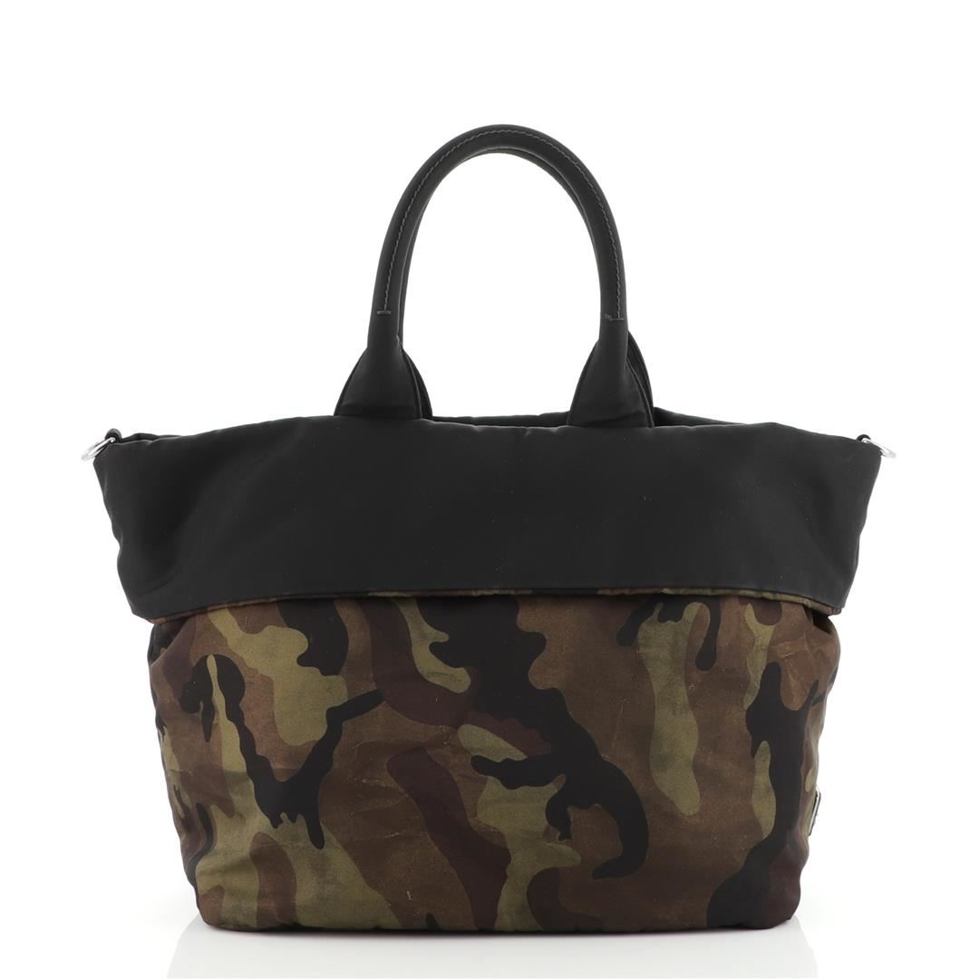 Prada Convertible Double Tote Printed Tessuto. All available information is listed in the description and shown in the photos. Prada Convertible Double Tote Printed Tessuto. Light odor in interior. Wear on exterior, handles and in interior, scratches on hardware.