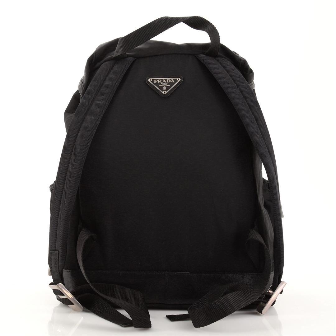 One Prada Double Front Pocket Backpack Tessuto Medium. Item is sold AS-IS. All available information is listed in the description and shown in the photo. Prada Double Front Pocket Backpack Tessuto Medium. Moderate odor in interior. Heavy creasing, wear and scuffs on exterior and flap leather trims, small stain on rear and underneath flap, wear in interior, scratches on hardware.