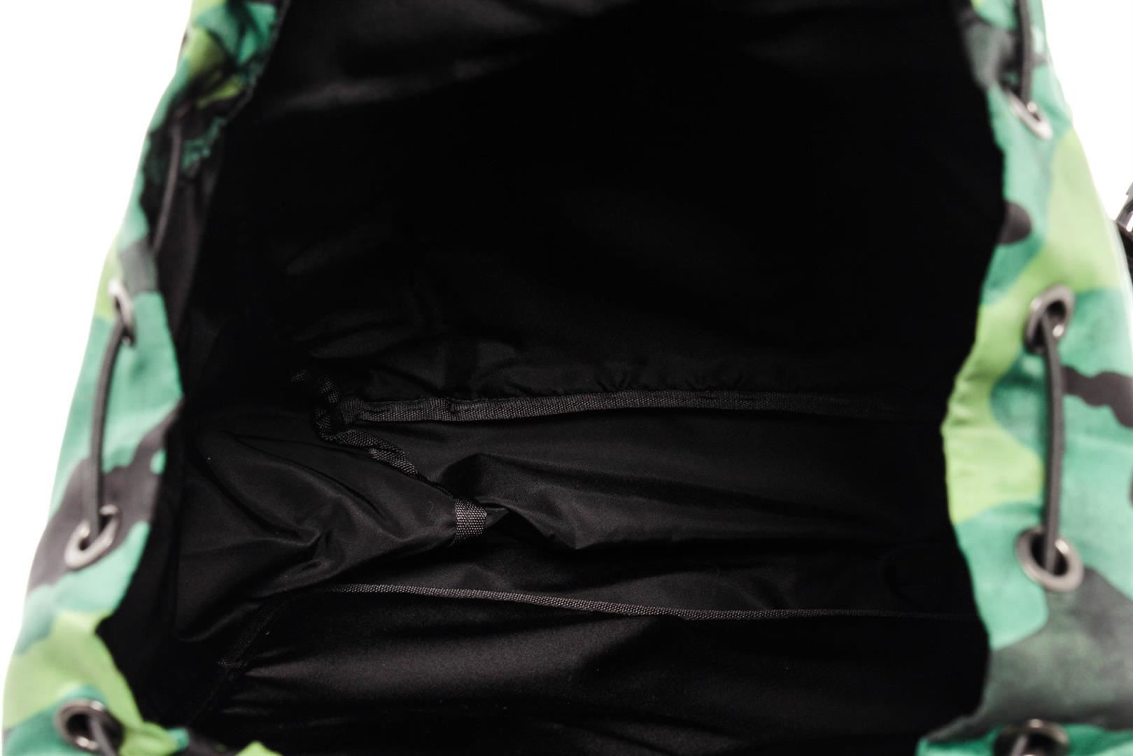 One Prada Green Printed Camo Tessuto Large Front Pocket Double Buckle Backpack. Item is sold AS-IS. All available information is listed in the description and shown in the photo. Prada Large Backpack features green multicolor camouflage Tessuto nylon, black nylon top handle, front pocket with zipper, two black padded shoulder strap that can be adjusted, silver-tone hardware, drawstring closure for the main compartment with flap on top completed with double buckles and black canvas lining. Height 14", Width 10.5", Depth 6", Strap Drop 6-18"