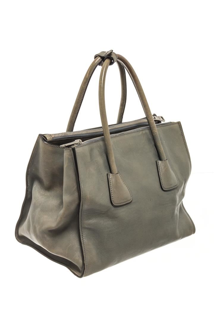 One Prada Grey Leather 2way Tote Bag. Item is sold AS-IS. All available information is listed in the description and shown in the photo. prada grey leather 2way tote bag Height: 8.26" Width: 10.6" Depth: 7.48" , Handle Drop: 18.11" / 21 x 27 x 19 Cm