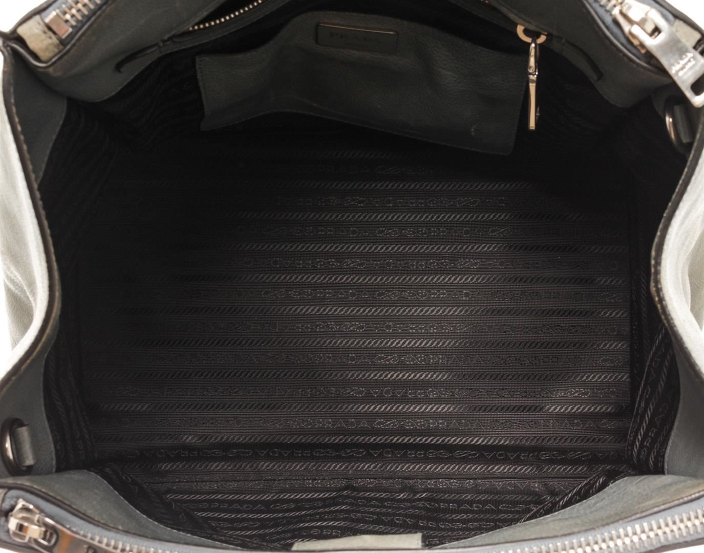 One Prada Grey Leather 2way Tote Bag. Item is sold AS-IS. All available information is listed in the description and shown in the photo. prada grey leather 2way tote bag Height: 8.26" Width: 10.6" Depth: 7.48" , Handle Drop: 18.11" / 21 x 27 x 19 Cm
