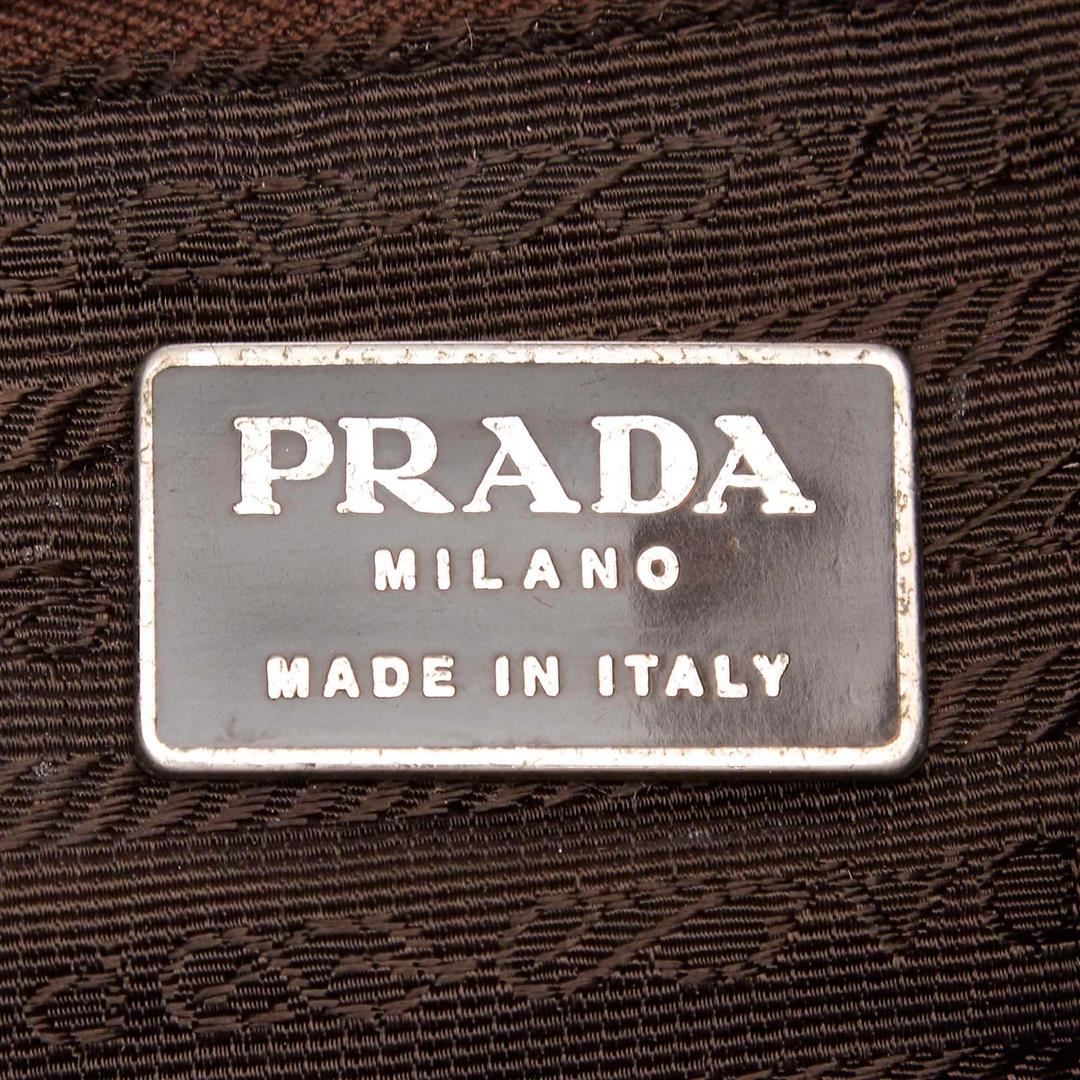 One Prada Leather Shoulder Bag. This shoulder bag features a leather body, a flat shoulder strap, an open top, and an interior zip pocket.