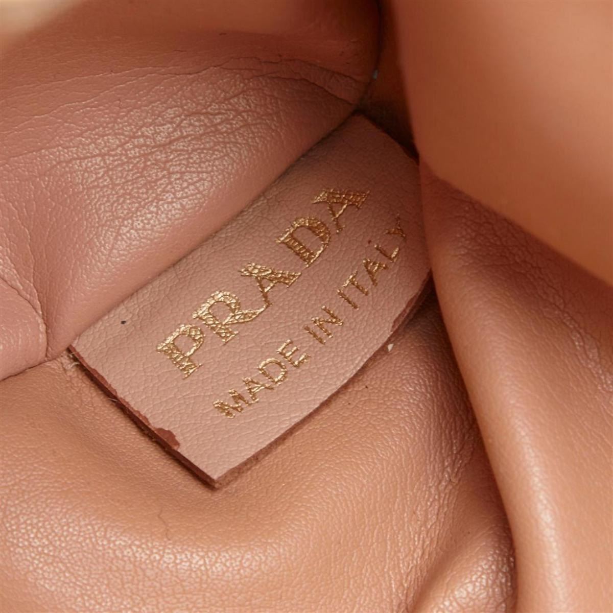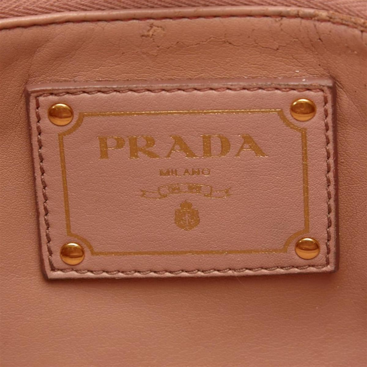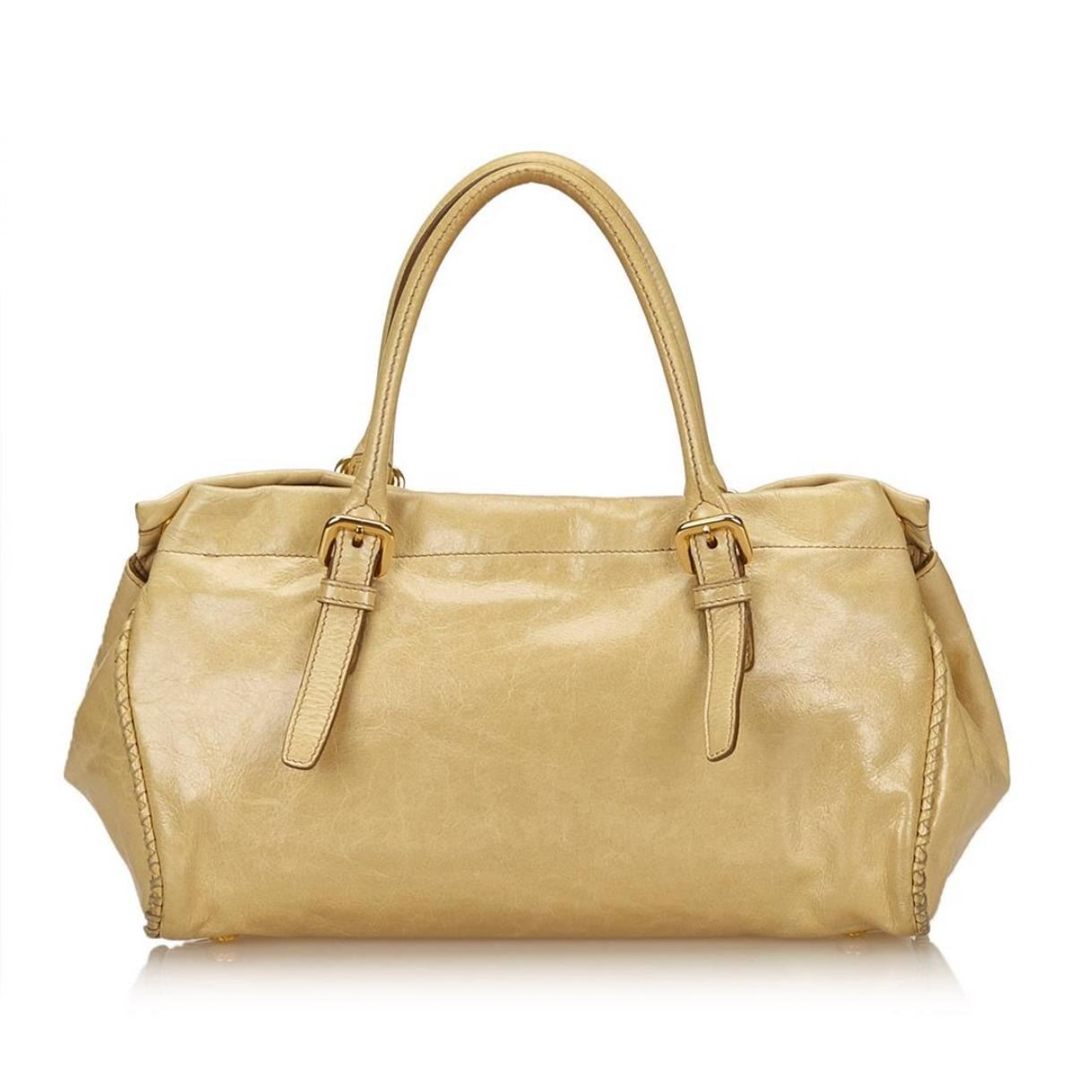 One Prada Leather Tote Bag. This tote bag features a leather body, rolled leather handles, button clasp closure, and interior zip and slip pocket.
