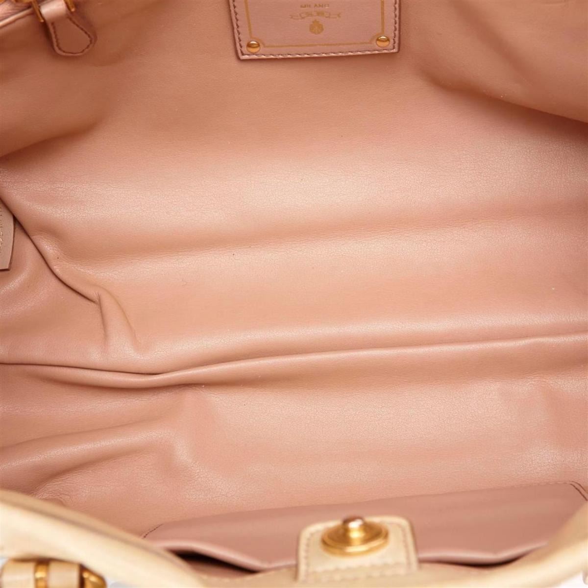 One Prada Leather Tote Bag. This tote bag features a leather body, rolled leather handles, button clasp closure, and interior zip and slip pocket.