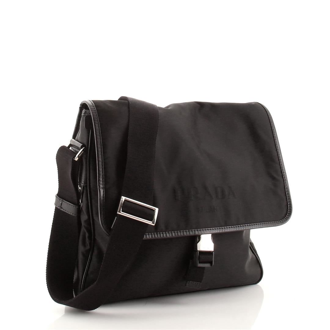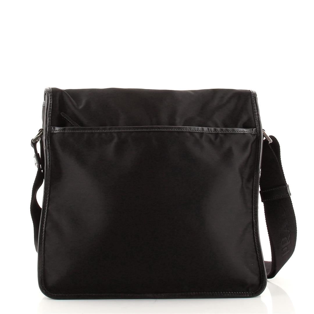 Prada Logo Flap Messenger Bag Tessuto Small. Creasing and light marks on exterior, wear on exterior corners, minor wear on strap. Scuffs underneath flap on leather trim, scratches on hardware.