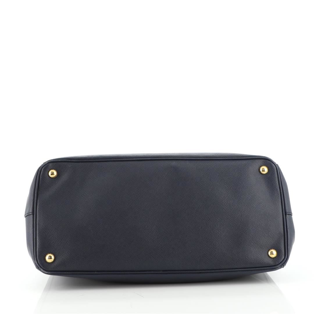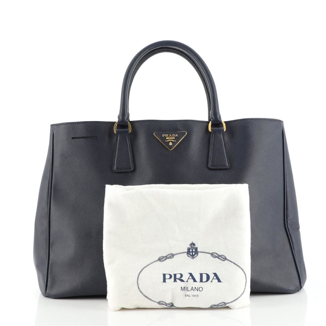 Prada Lux Open Tote Saffiano Leather Large. Heavy wear on base corners, creasing and light marks on exterior and interior opening trim. Wear on handles, cracking on side opening wax edges, scratches and discoloration on hardware.