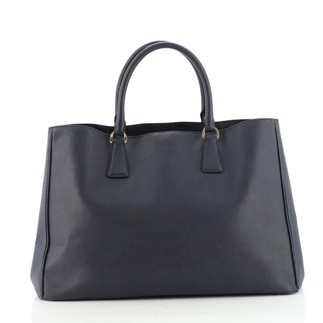 One Prada Lux Open Tote Saffiano Leather Large. Item is sold AS-IS. All available information is listed in the description and shown in the photo. Prada Lux Open Tote Saffiano Leather Large. Heavy wear on base corners, creasing and light marks on exterior and interior opening trim. Wear on handles, cracking on side opening wax edges, scratches and discoloration on hardware.