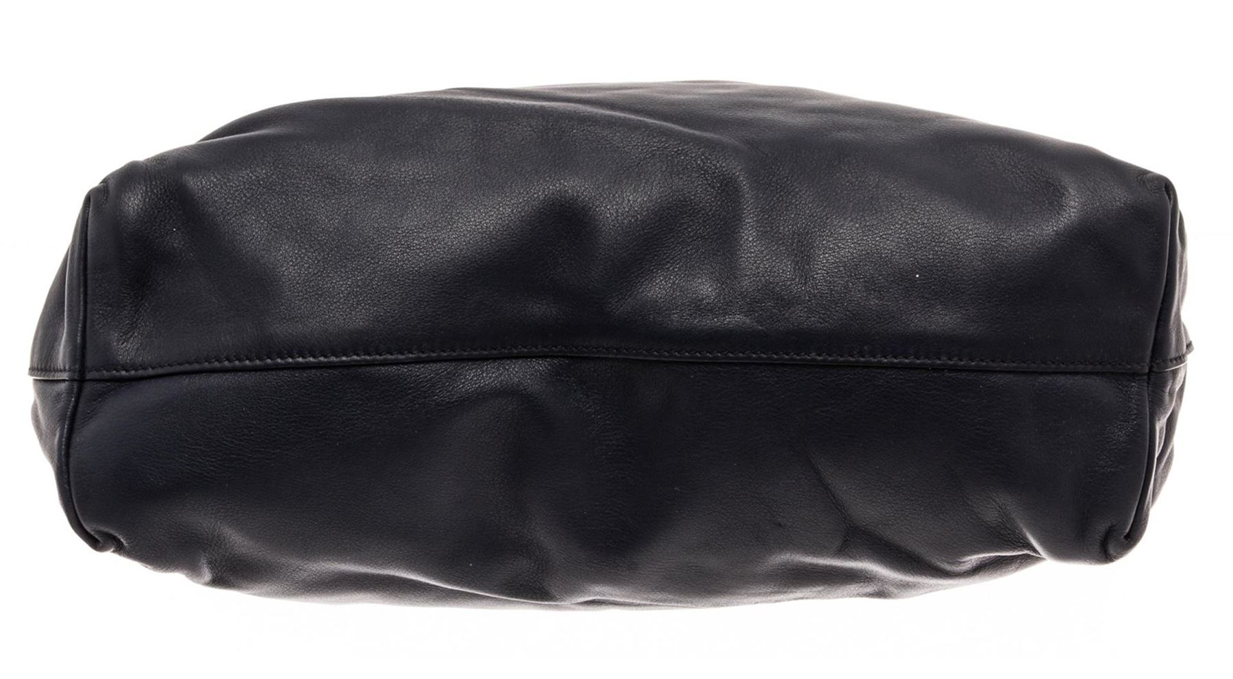 Prada Navy Leather 2Way Shoulder Bag. All available information is listed in the description and shown in the photos. Prada Navy Leather 2Way Shoulder Bag with black leather, logo lettering, transparent id slot tag, concealed magnetic fastening, two top handles, internal zip pocket, internal logo patch, leather lining, gold-tone hardware, square body. Height: 14.5" Width: 16.9" Depth: 1.57", Handle Drop: 5.11" / 37 x 43 x 4 Cm