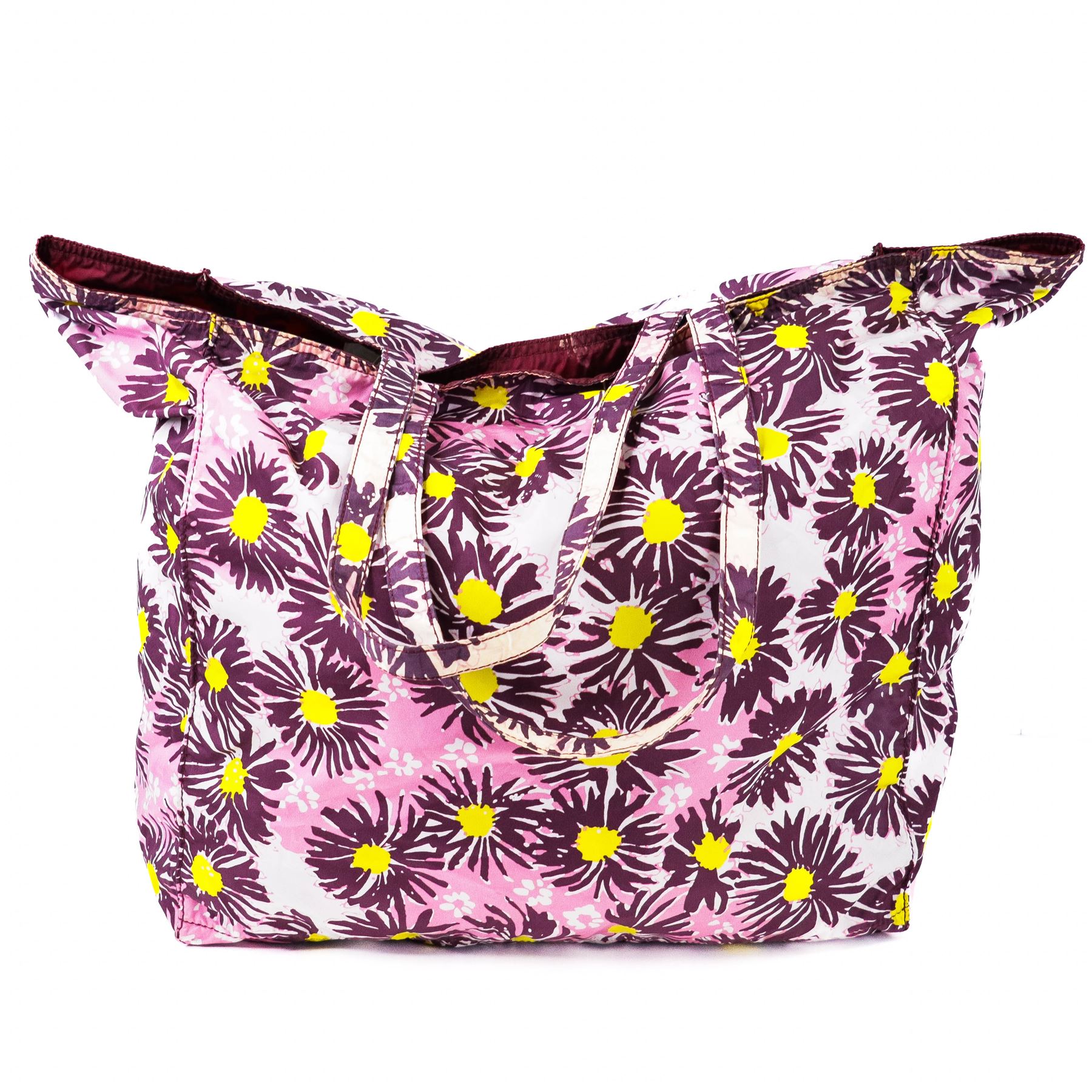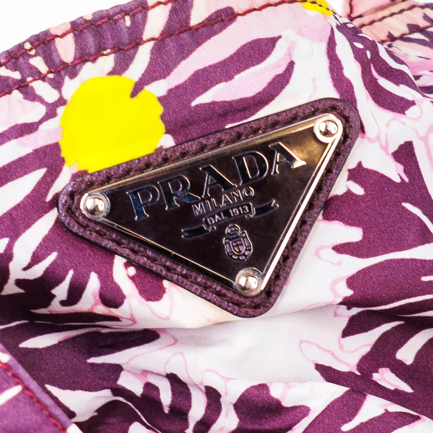Rare Authentic Prada tote in lightweight nylon with all-over pink, purple, and yellow daisy floral print