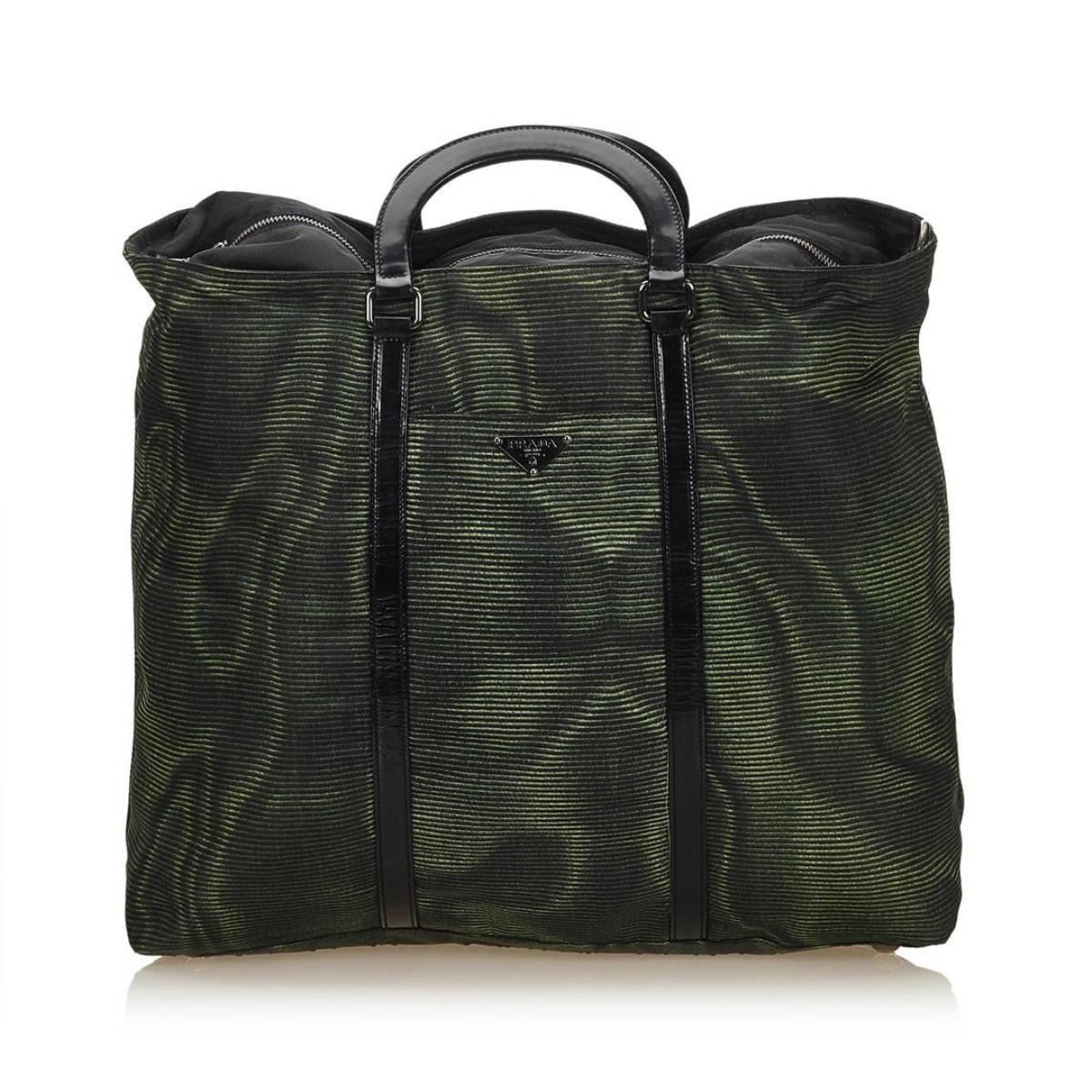 One Prada Nylon Handbag. This handbag features a nylon body, flat patent leather handles, top zip closure and interior zip pocket.