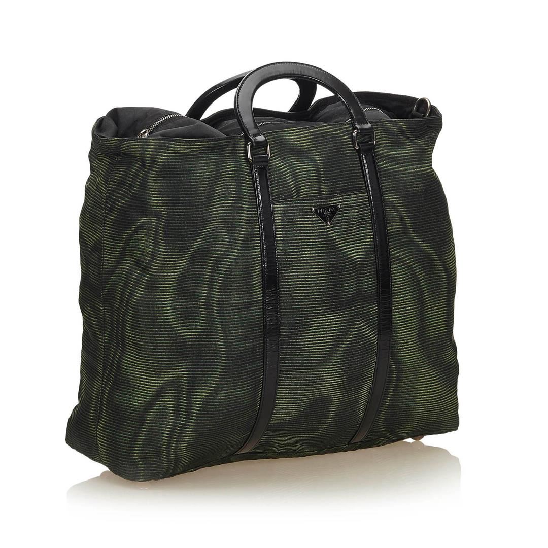 One Prada Nylon Handbag. This handbag features a nylon body, flat patent leather handles, top zip closure and interior zip pocket.