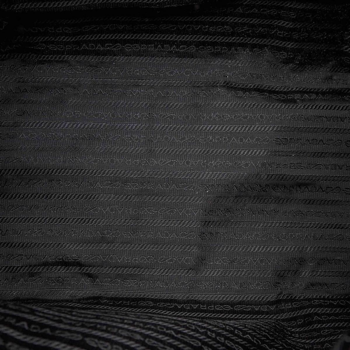 This tote bag features a nylon body with embossed leather trim, flat shoulder straps, top zip closure, and an interior zip pocket. Measurements: Length: 34 in / 86 cm Width: 50 in / 127 cm 18 in / 46 cm Condition: Pre-Owned Good overall, please see photographs for detail.