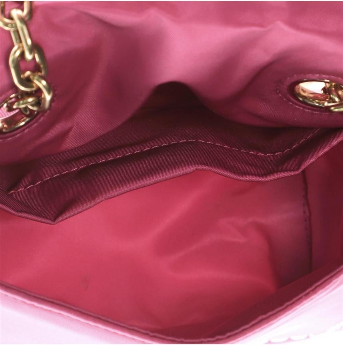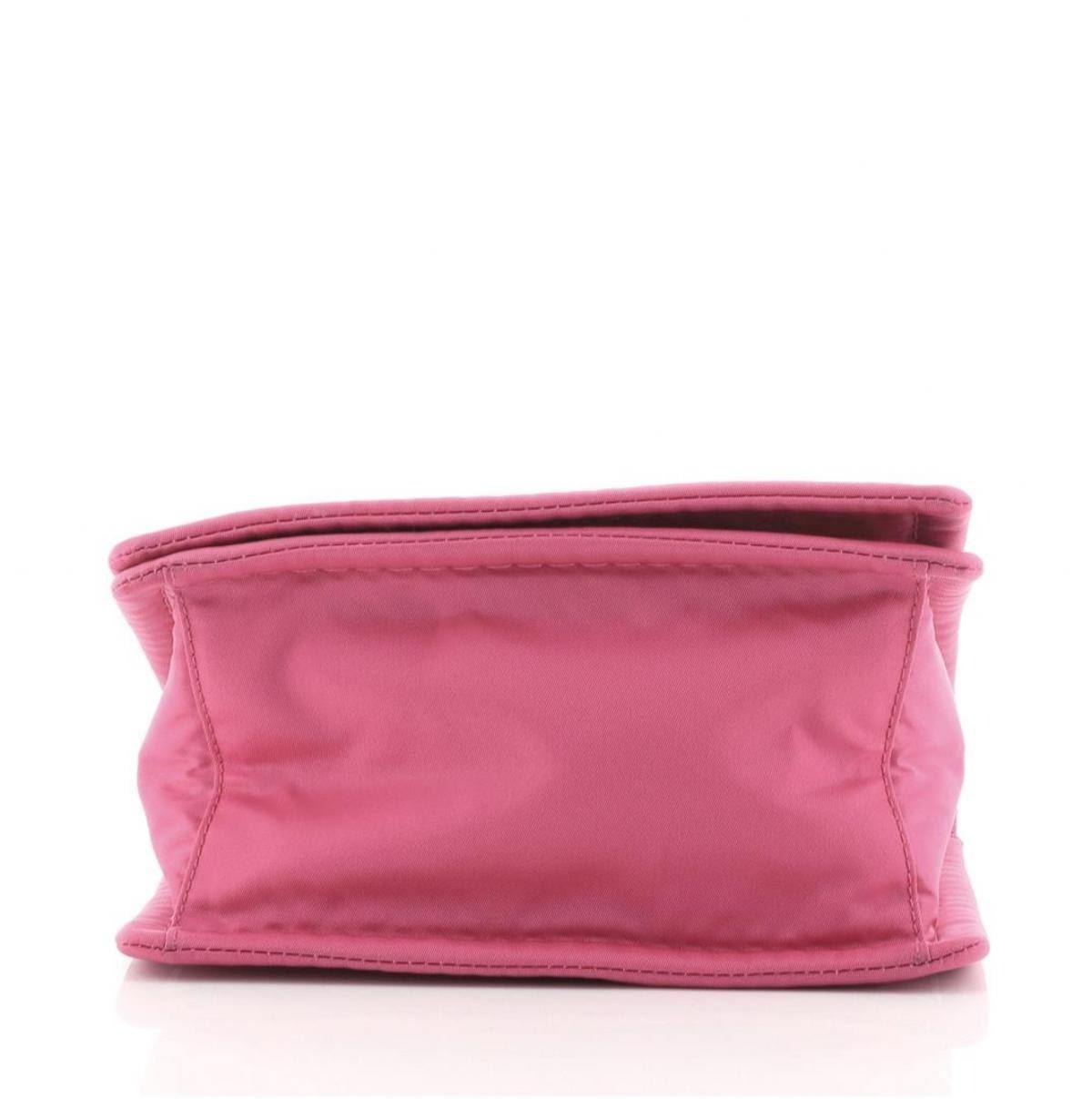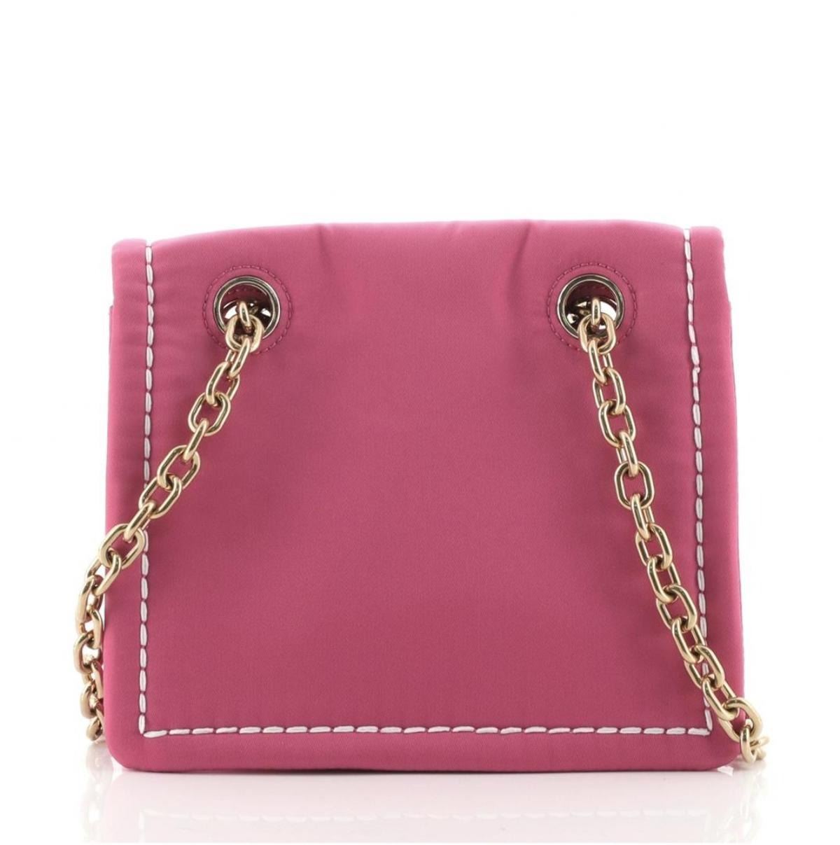 Prada Padded Chain Flap Bag Tessuto Small Pink Condition Details: Minor wear on flap edge and in interior base, scratches on hardware. Height 6.5", Width 7.5", Depth 4", Strap Drop 22