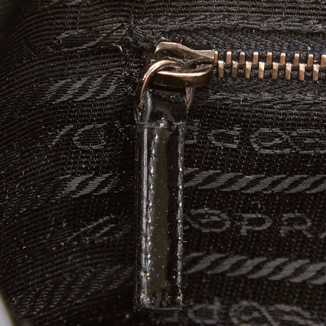 This handbag features a patent leather body, flat leather handles with belt details, top zip closure, and interior zip pocket. Measurements: Length: 32.5 in / 83 cm Width: 20.5 in / 52 cm 11 in / 28 cm Condition: Pre-Owned Good overall, please see photographs for detail.