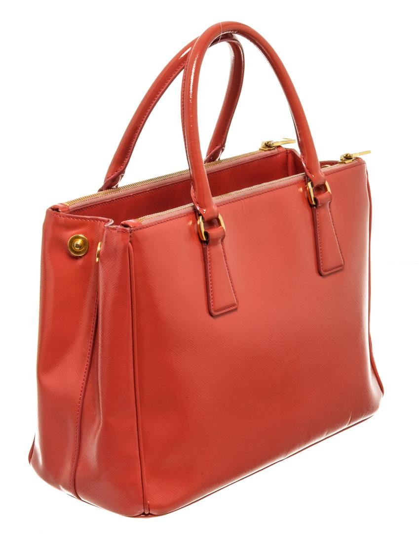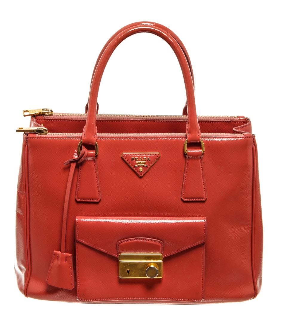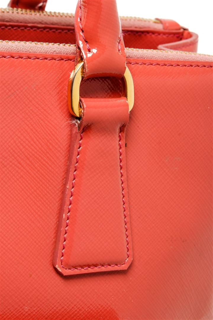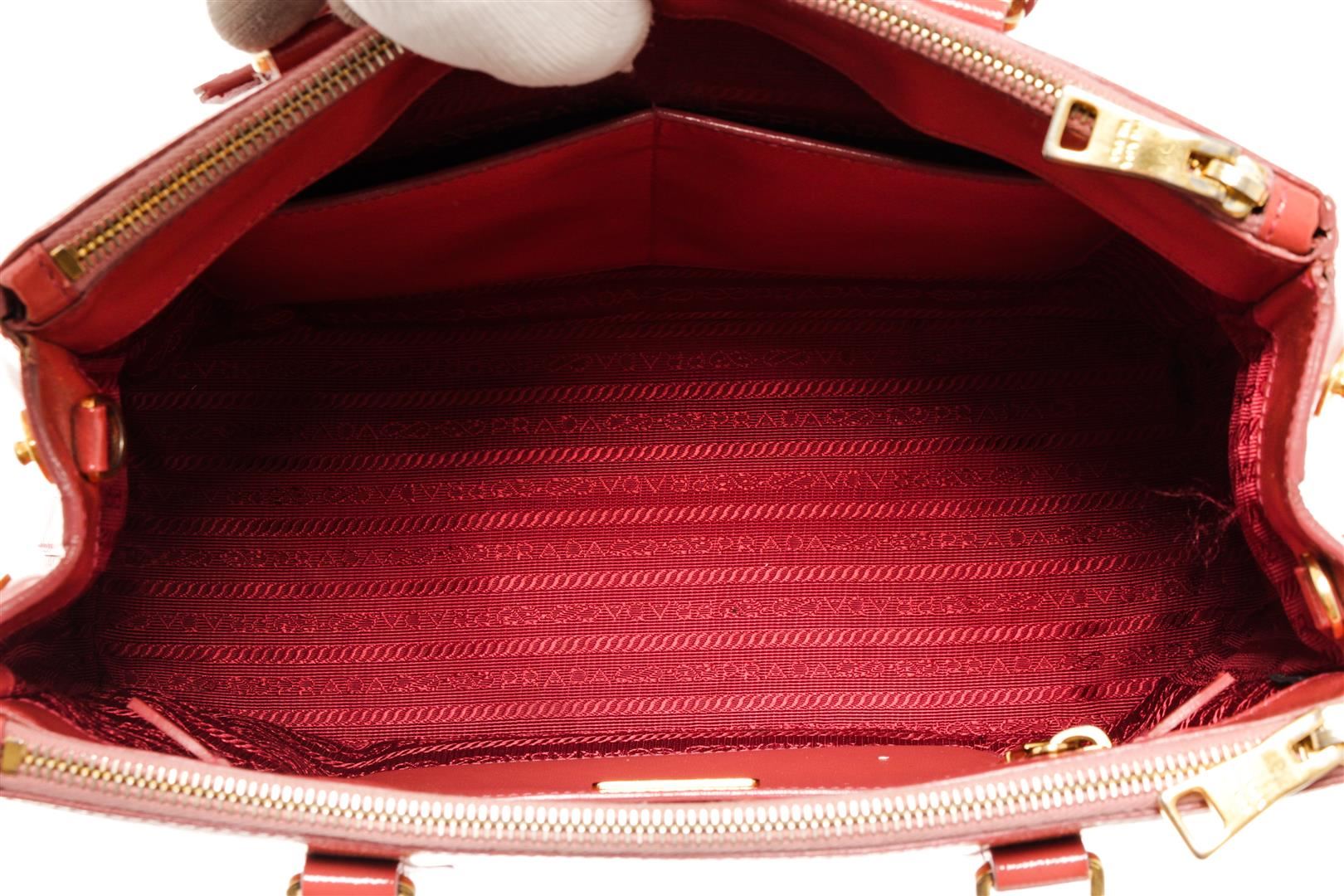 Prada Pink Leather Medium Tote Bag. All available information is listed in the description and shown in the photos. Prada Pink Leather Medium Tote Bag. Features gold-tone hardware, extra pink leather strap, one flap pocket on front that locks with key included, pink canvas interior, and a gold zipper closure.