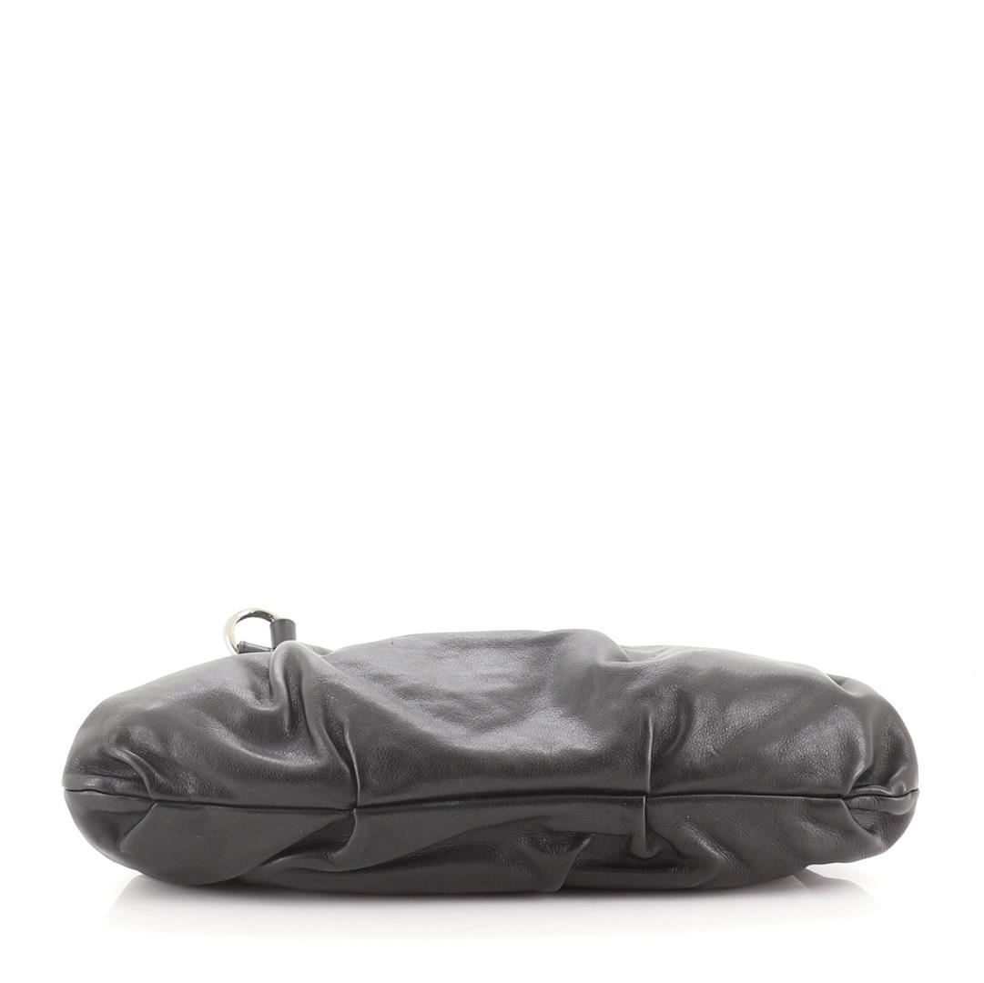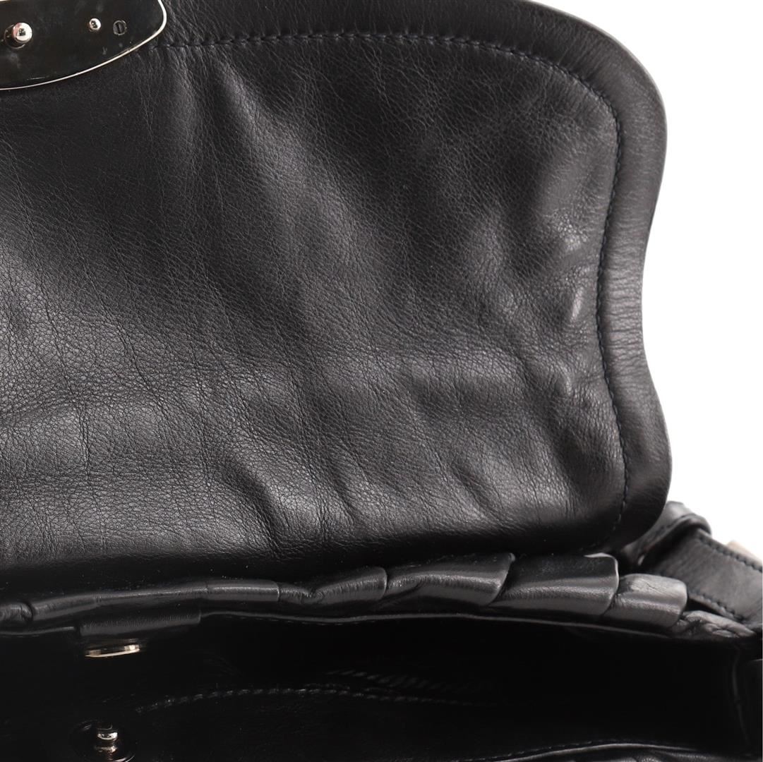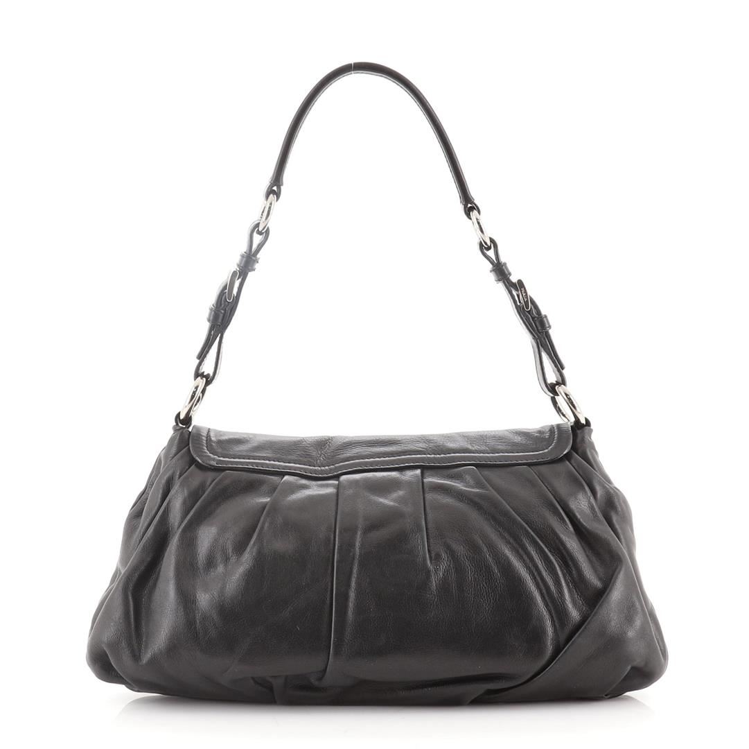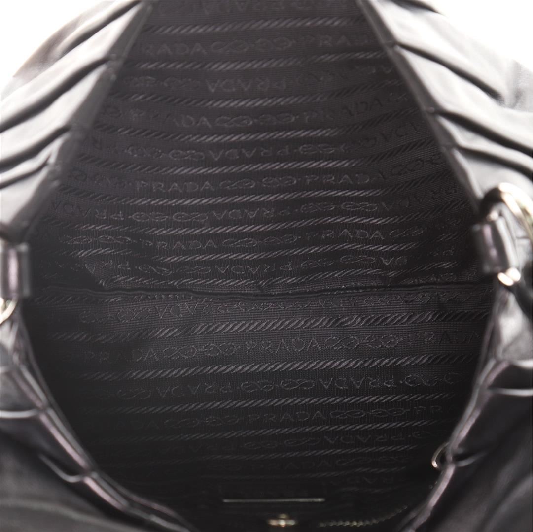 Prada Pushlock Shoulder Bag Soft Calf Medium Black Condition Details: Creasing, wear, scuffs and small indentations on exterior, strap and underneath flap. Splitting and fraying on strap base wax edges, scratches and slight discoloration on hardware.