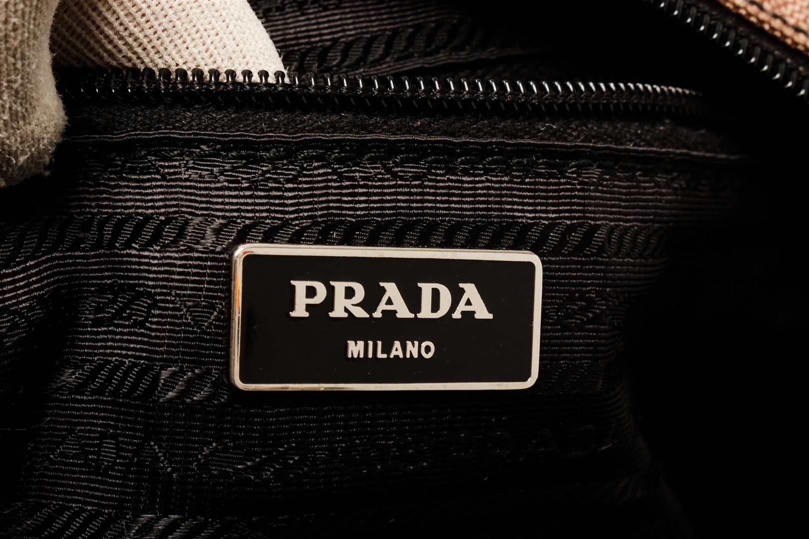 One Prada Red Multicolor Canvas Zip Around Small Satchel Bag. Item is sold AS-IS. All available information is listed in the description and shown in the photo. prada red multicolor canvas zip around small satchel bag with creasing and minor wear on exterior, moderate stain on base, discoloration on handles. minor splitting on zipper pull wax edge, pilling along zipper tape, scratches and tarnish on hardware. Height: 8 in (20.32 cm), Width: 6 in (15.24 cm), Depth: 12 in (30.48 cm)