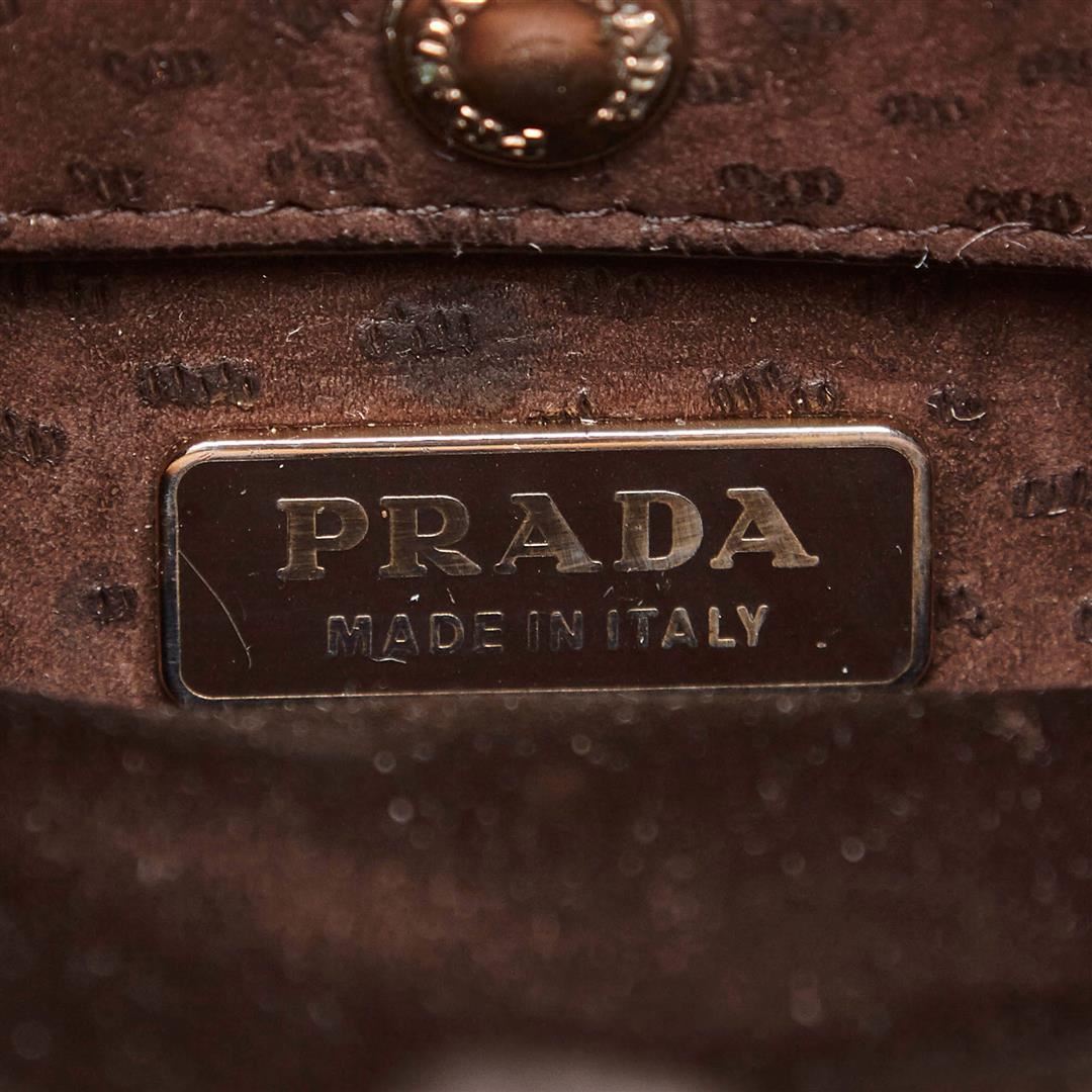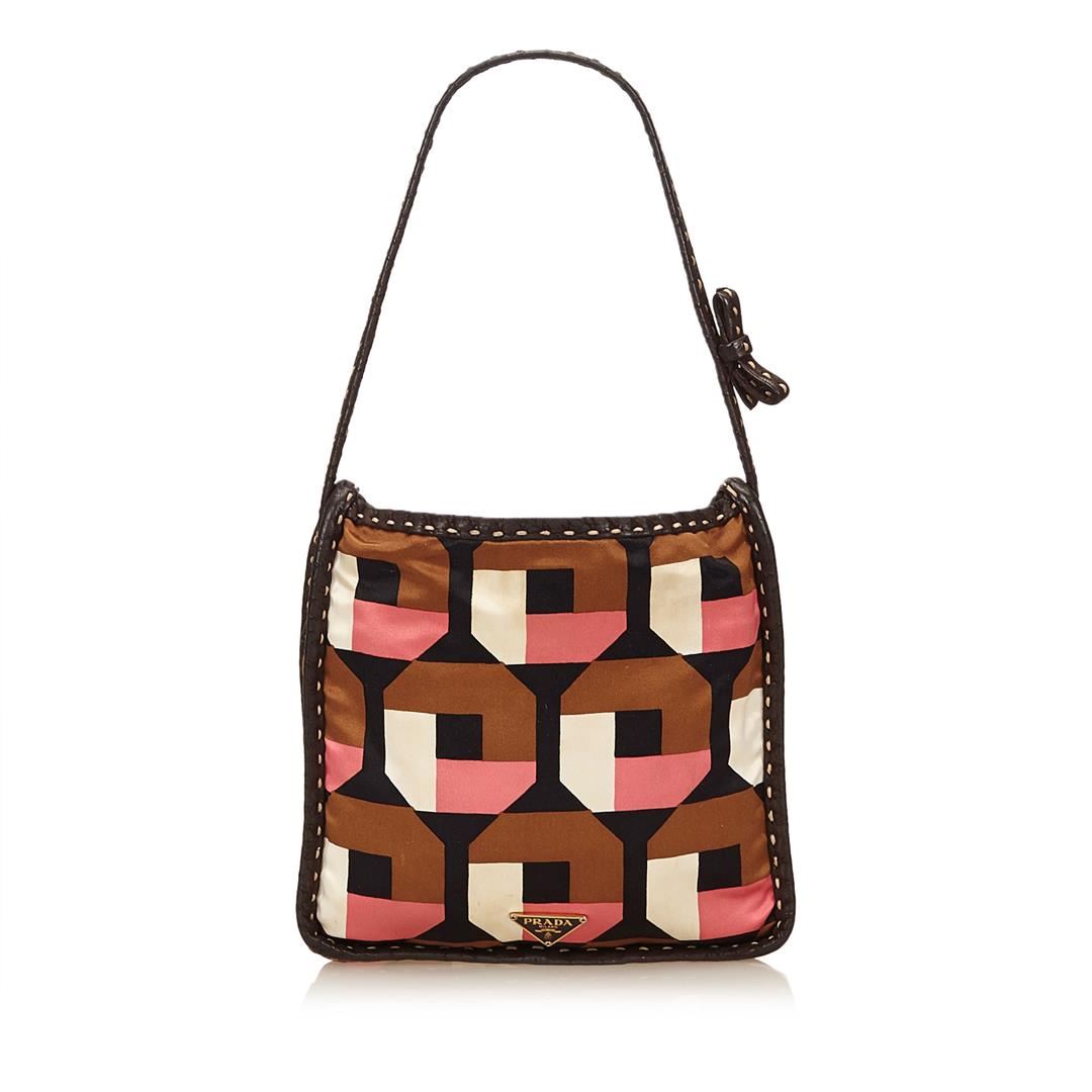One Prada Satin Handbag. This handbag features a satin body, leather strap, magnetic closure, and interior zip and slip pockets.